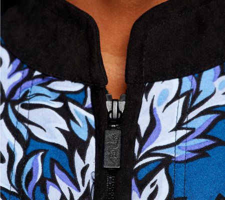 Ready to turn over a new leaf? Change up your wardrobe with this stunning, foliage-print jacket. The allover leaf pattern makes it an eye-catching addition to any layered look. From Bob Mackie.