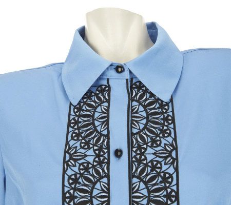 Bob Mackie's Lace Embroidered Button Front Blouse