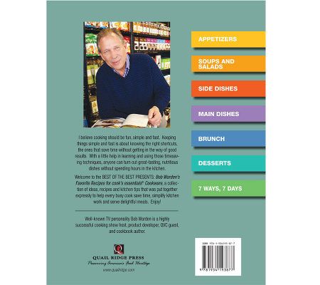 Let Bob Warden share his favorites with you and your family. This book contains 200 recipes to help you save time and serve delicious dishes--including chicken pot pie, green bean and tomato casserole with whole-grain crunch topping, and peach pouch pie with blueberries. Ideal for everyday dinners and desserts. From Cook's Essentials(R) Kitchenware.