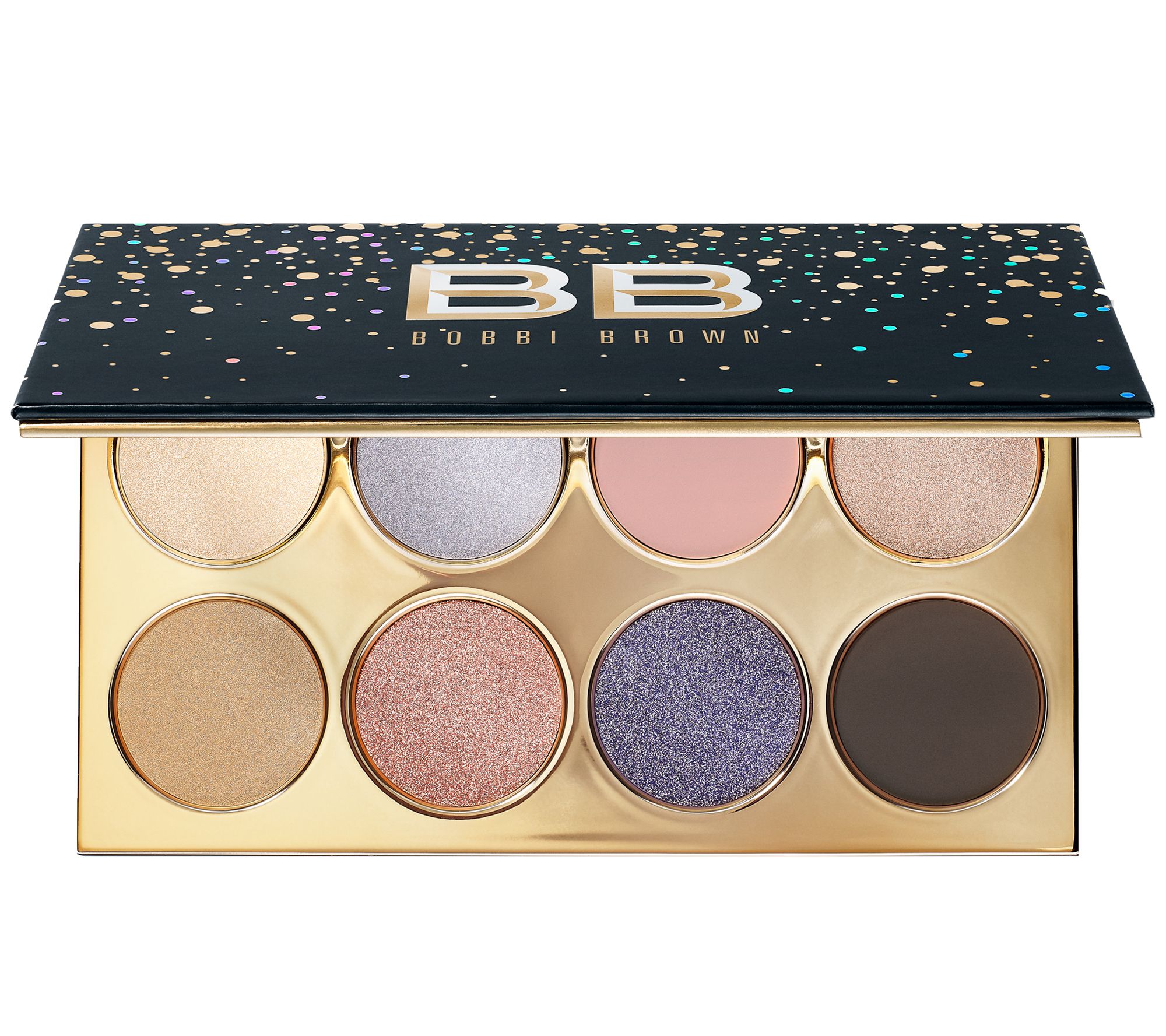 The party-perfect Bobbi Brown Starlight Crystal Eye Shadow Palette features eight shadows from soft to sultry shades in rich matte, metallic, and shimmery finishes. Ideal for creating radiant looks day or night, the palette comes housed in a sophisticated matte compact with festive flecks and a metallic interior with mirror.