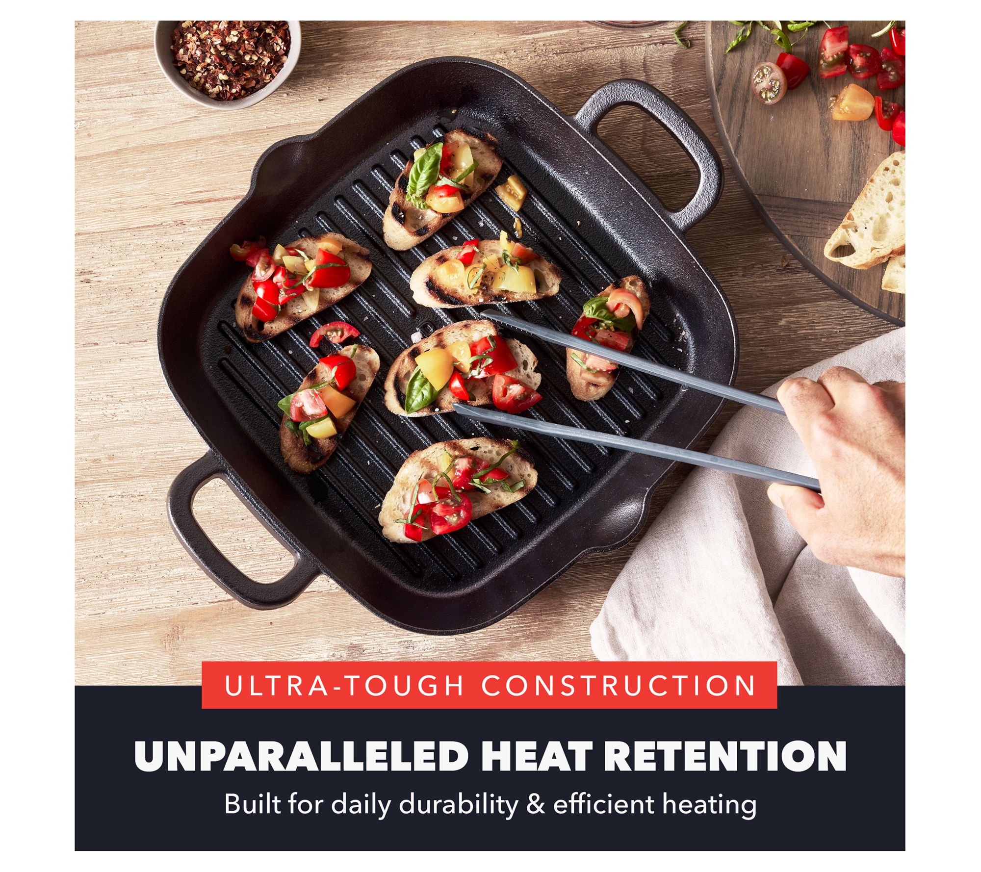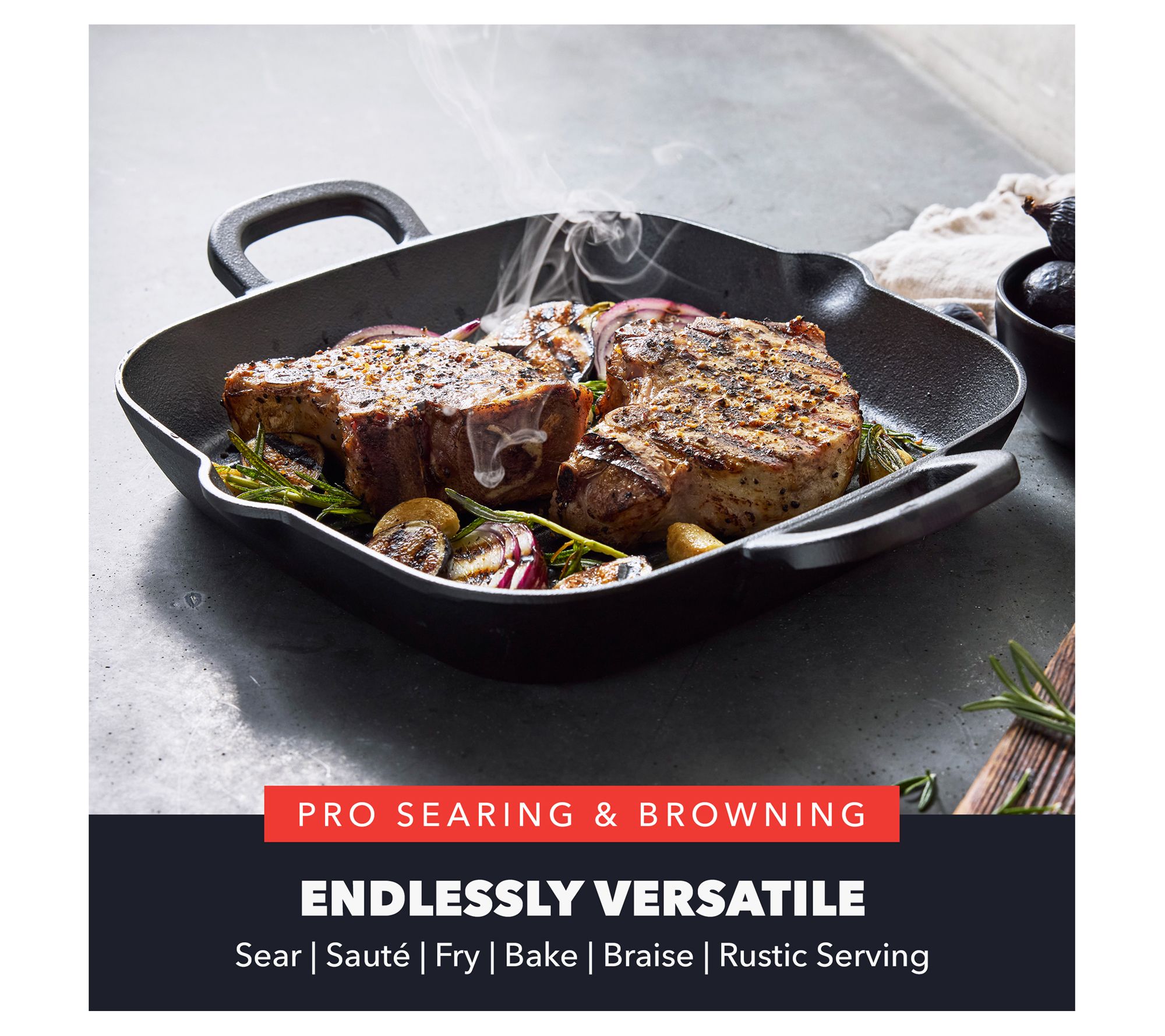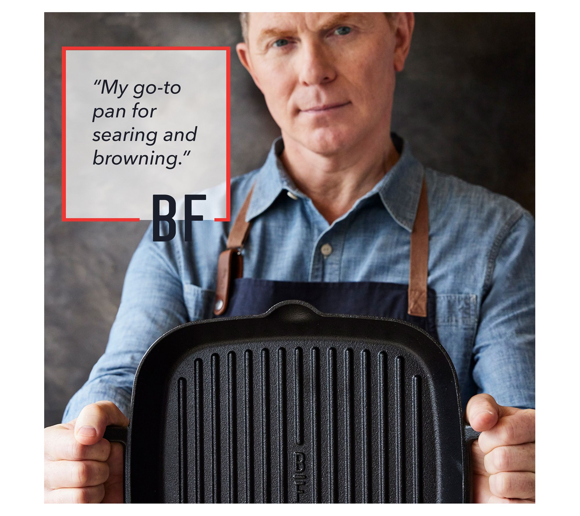 Revolutionize your home cooking with the Bobby Flay by GreenPan 11" cast-iron square grill pan. Designed in collaboration with the legendary chef, this grill pan offers the perfect way to achieve golden-brown finishes and classic sear marks indoors. Versatile, it performs flawlessly on any cooktop, including stovetop, grill, oven, or open flame. From Bobby Flay by GreenPan.