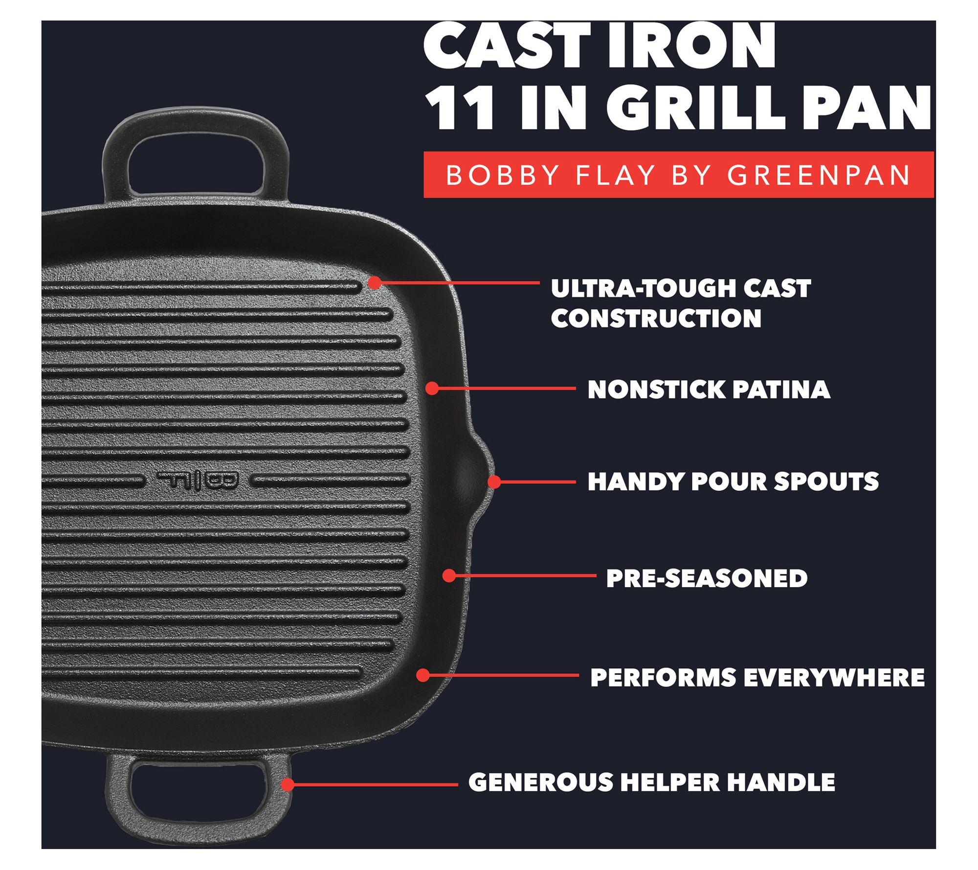 Bobby Flay by GreenPan 11" Cast Iron Square Grill Pan
