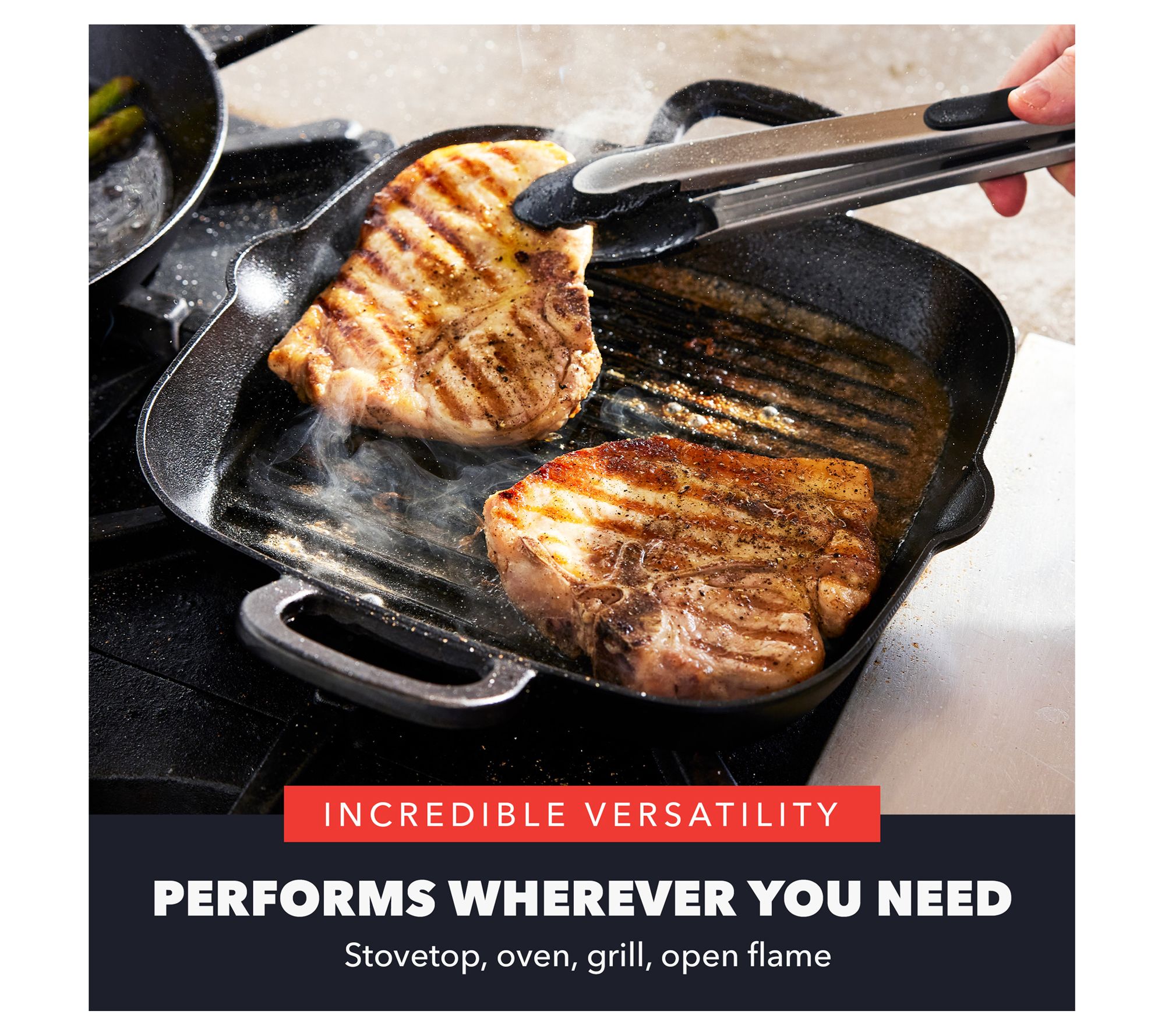 • For use on stovetop, oven, grill, open flame