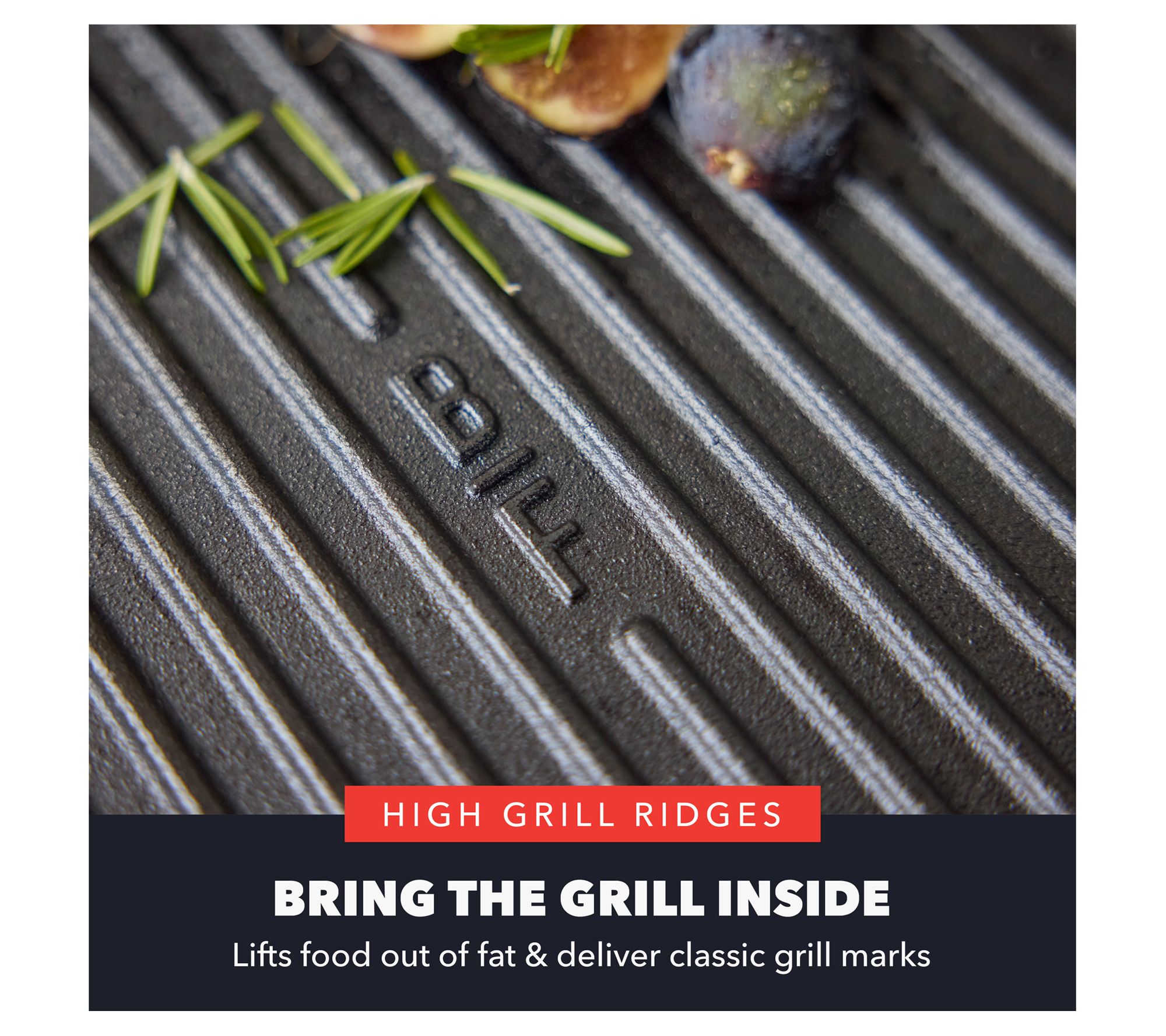 • High grill ridges lift food out of fats and deliver classic sear marks