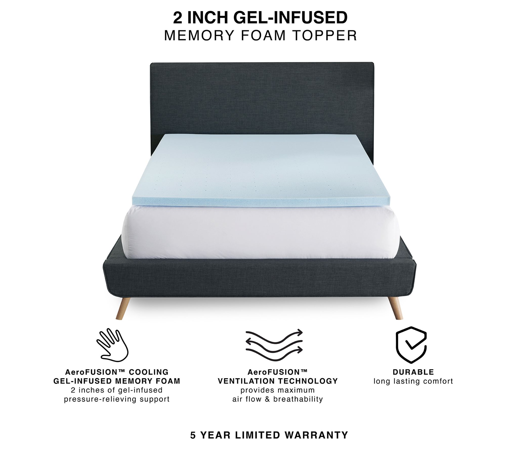 Transform your sleep experience with this 2" gel-infused memory foam mattress topper. This luxurious topper introduces a layer of AeroFusion memory foam that delivers supportive comfort, along with cooling gel for a restful night's sleep. From Bodipedic.
