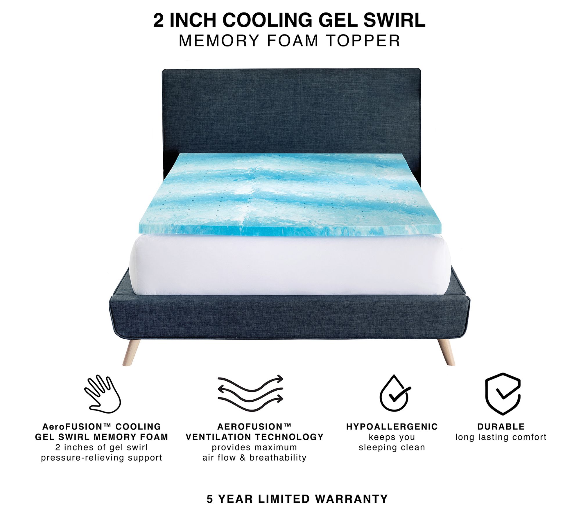 Transform your mattress into a cooler, more comfortable sleep surface with the Bodipedic gel swirl memory foam topper. This 2" topper uses AeroFusion gel memory foam to provide optimal support and spinal alignment, ensuring a restful night's sleep. Designed with ventilation technology and swirls of cooling gel, it helps regulate temperature and promote air flow for a cool, comfortable slumber. From Bodipedic.