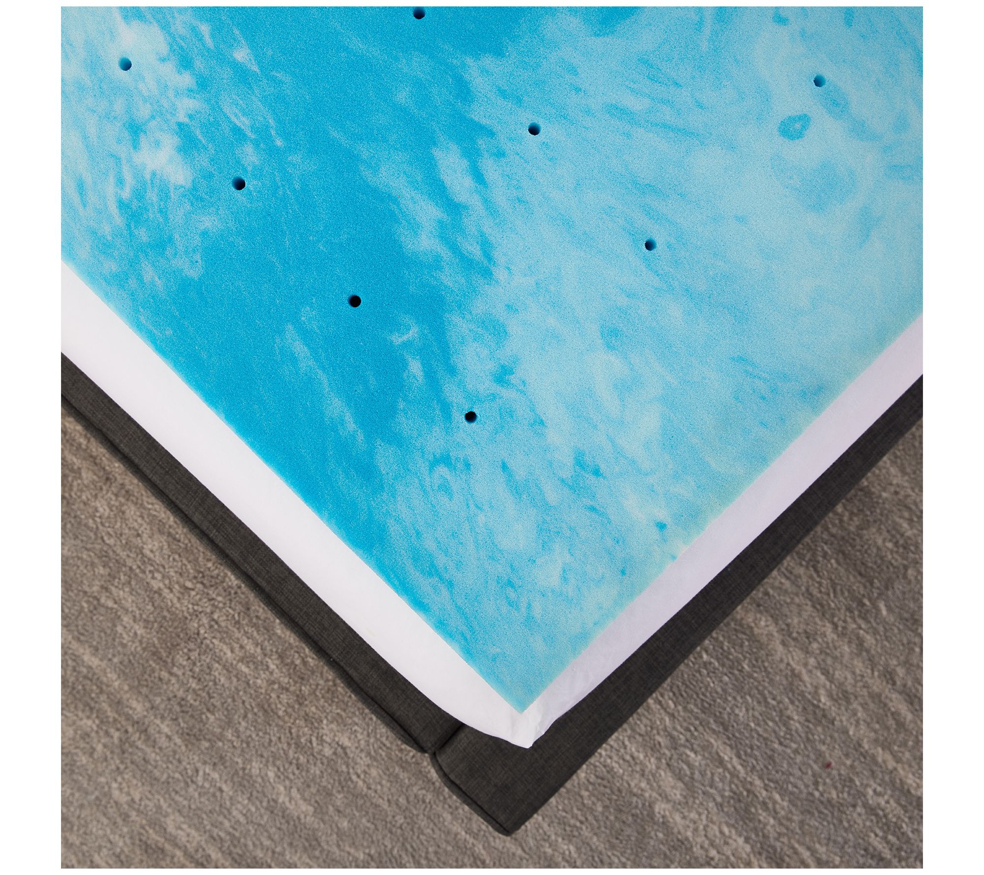 Layer your mattress with plush, supportive comfort using this Gel Swirl Memory Foam Mattress Topper. Three inches of AeroFusion gel memory foam provide optimal spinal alignment and pressure point relief while promoting cooler sleep with its cooling gel swirls. Ventilation technology enhances airflow and temperature regulation, ensuring a restful night's sleep. From Bodipedic