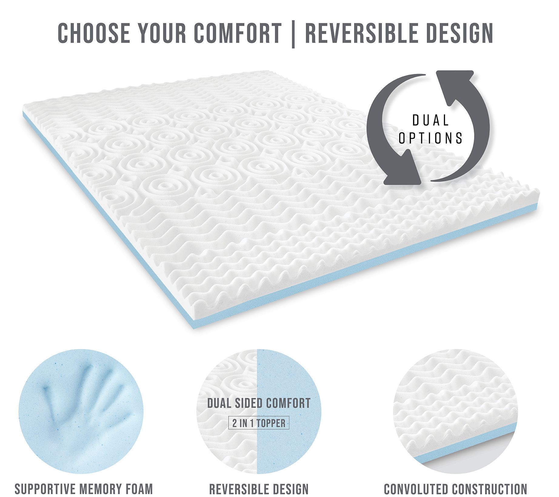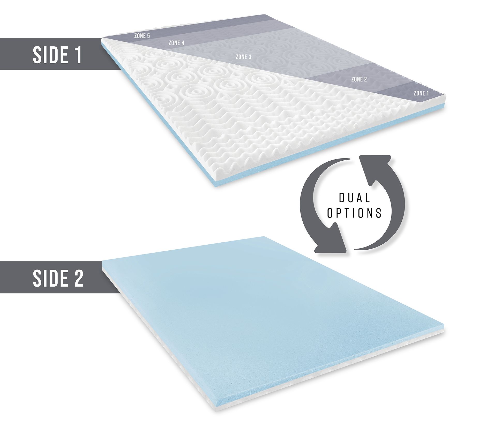 Transform your sleep experience with this versatile memory foam mattress topper. Designed to rejuvenate your mattress, it features dual layers for customized support—choose between plush AeroFusion memory foam or zoned convoluted foam. Each side offers unique benefits, whether you need spinal alignment or targeted body weight distribution. Enjoy long-lasting comfort and refreshing sleep. From Bodipedic.