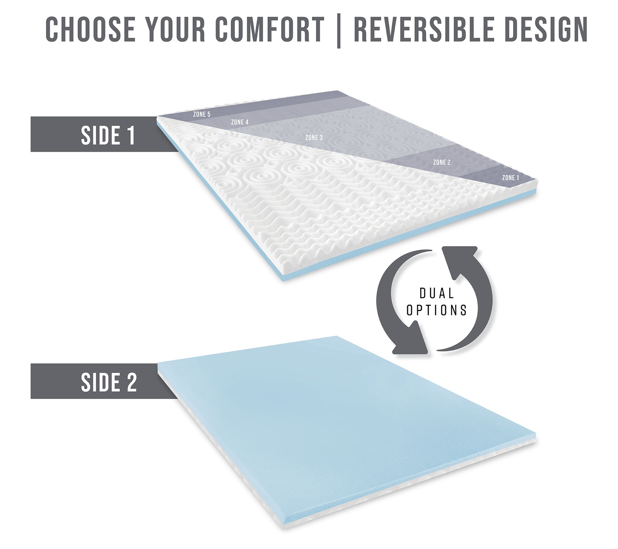 Transform your sleep experience with this versatile memory foam mattress topper. Designed to rejuvenate your mattress, it features dual layers for customized support—choose between plush AeroFusion memory foam or zoned convoluted foam. Each side offers unique benefits, whether you need spinal alignment or targeted body weight distribution. Enjoy long-lasting comfort and refreshing sleep. From Bodipedic.