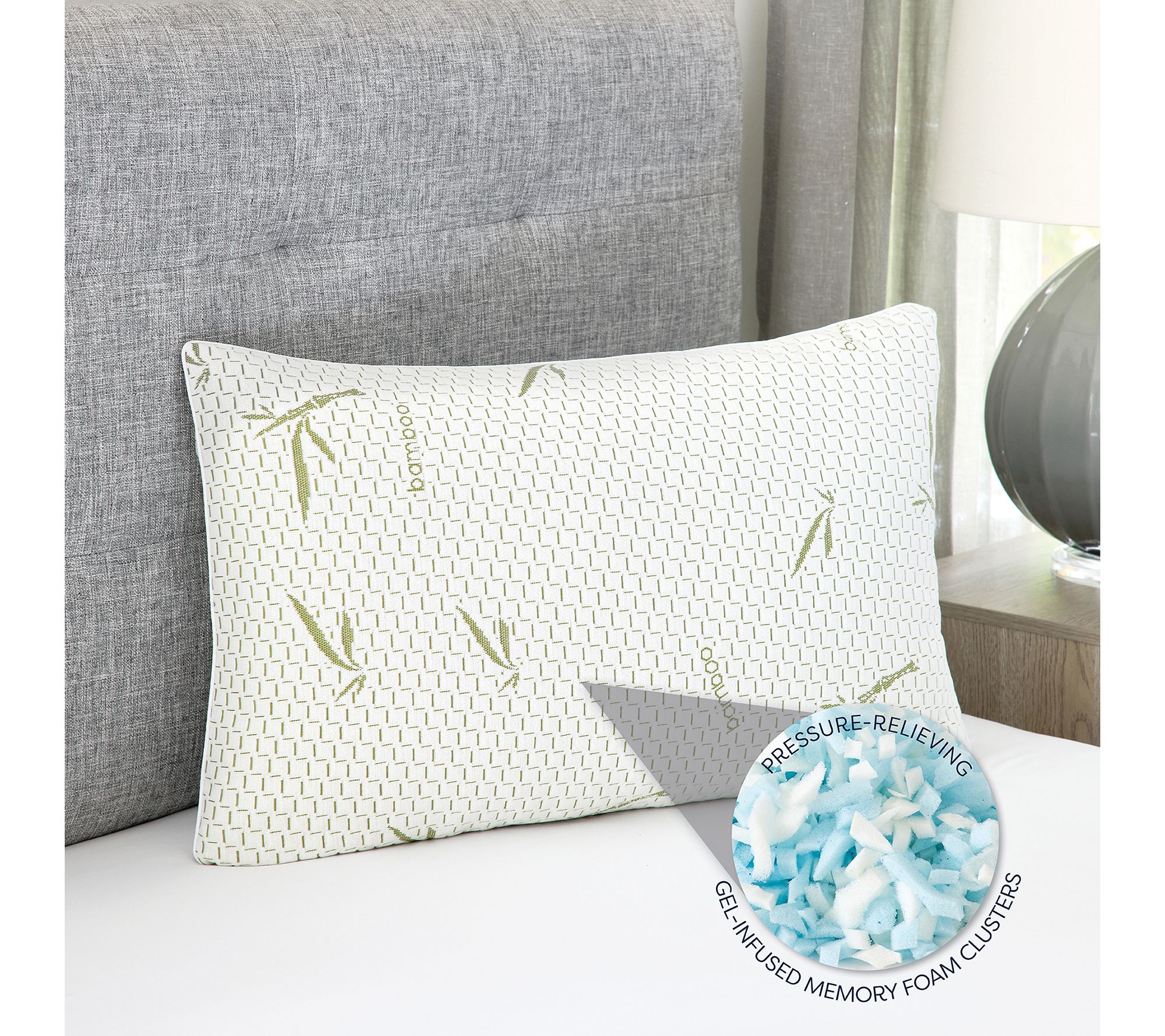 Enjoy custom support and refreshing comfort with the Bodipedic memory foam cluster bed pillow with rayon cover. This pillow is filled with gel-infused memory foam clusters, perfect for all sleep positions, and features a luxuriously soft fabric cover with rayon from bamboo threads for a silky soft feel. From Bodipedic.