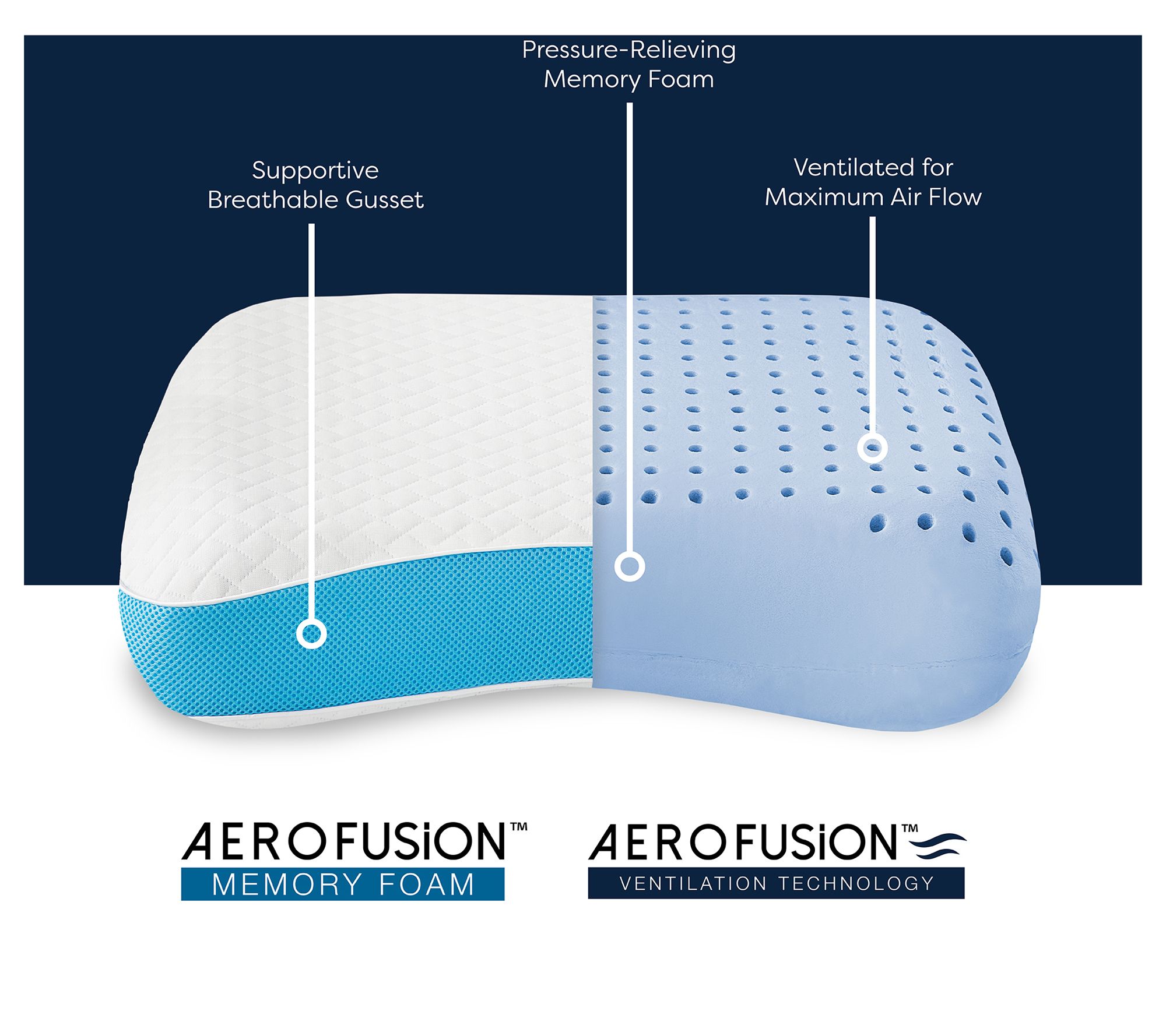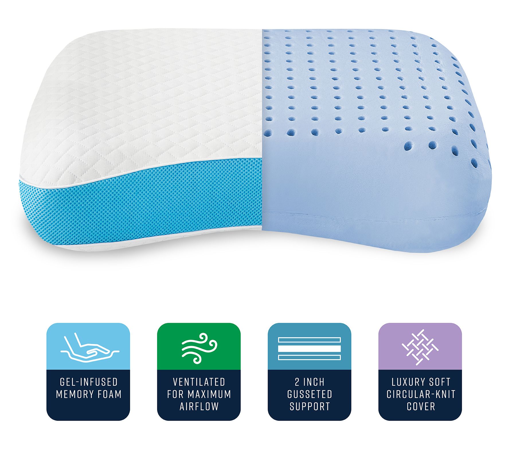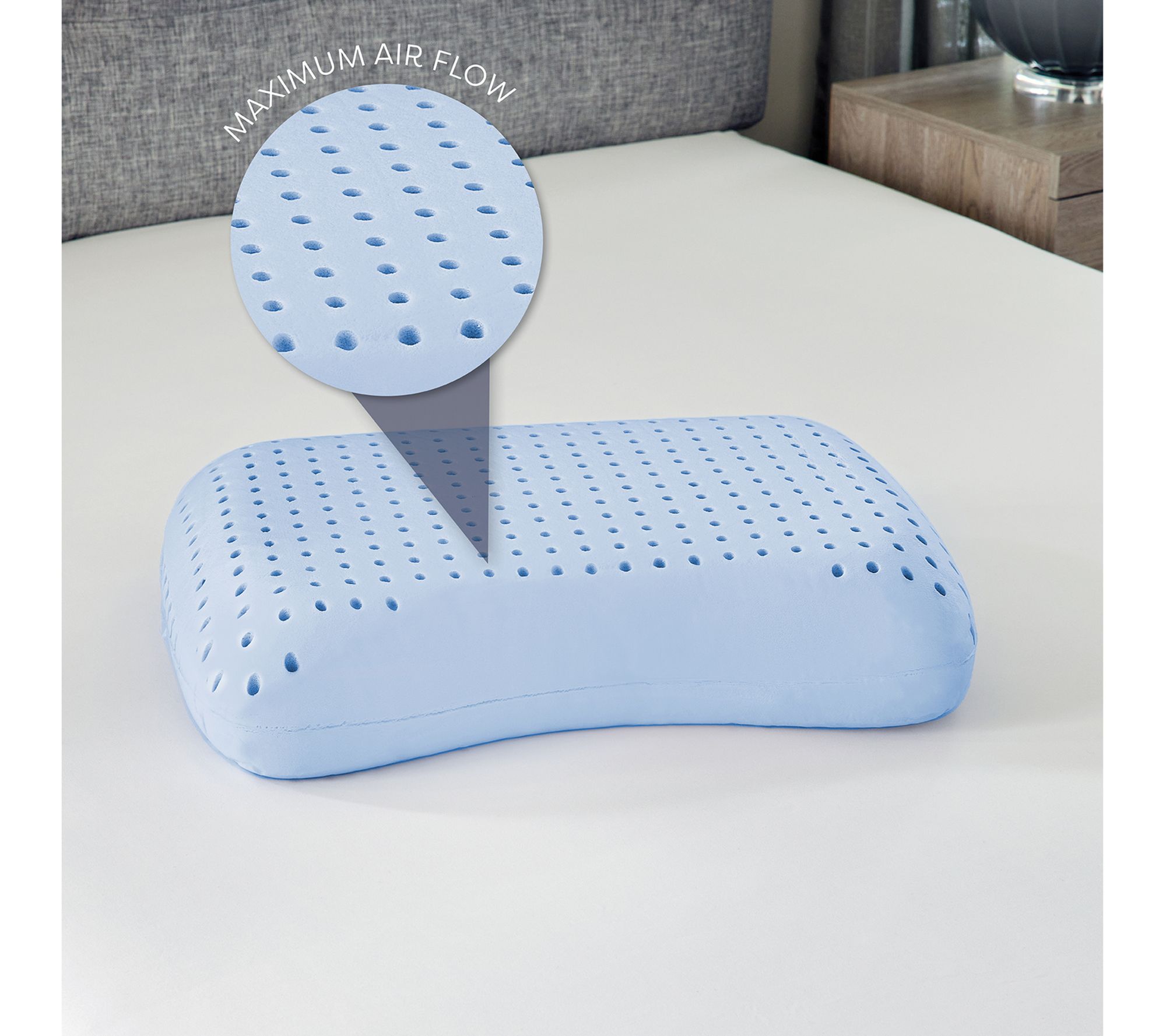 Side and back sleepers can enjoy supportive body alignment with the unique contour shape of this memory foam bed pillow. The gel-infused AeroFusion memory foam cradles the head and neck for enhanced pressure relief and features a 2" gusset for enhanced support so you can enjoy refreshing sleep throughout the night. From Bodipedic.