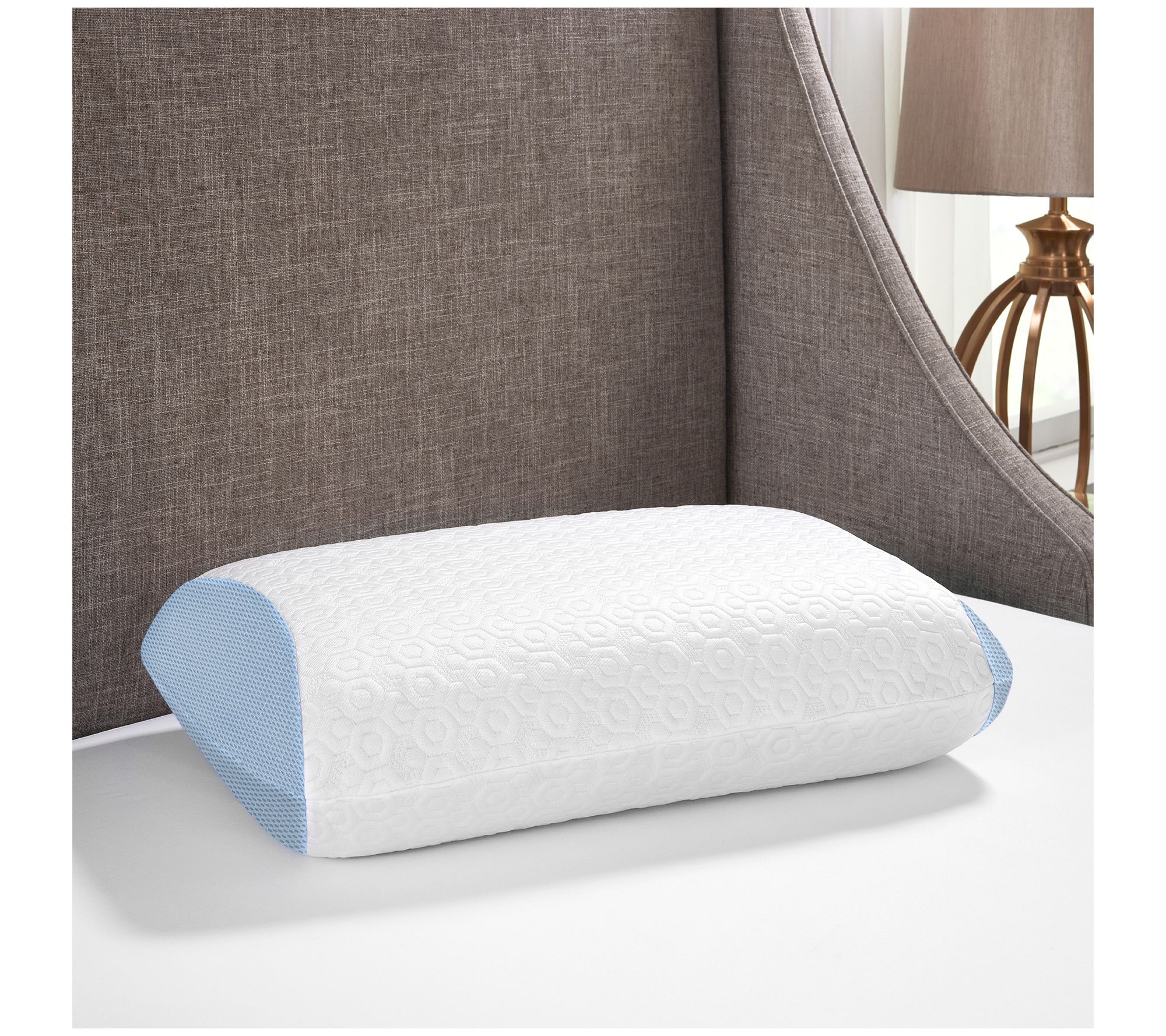 Sleep in cool comfort with this bed pillow featuring ventilated gel-infused memory foam for enhanced support and cooling polyethylene fibers for a refreshing rest. From Bodipedic.