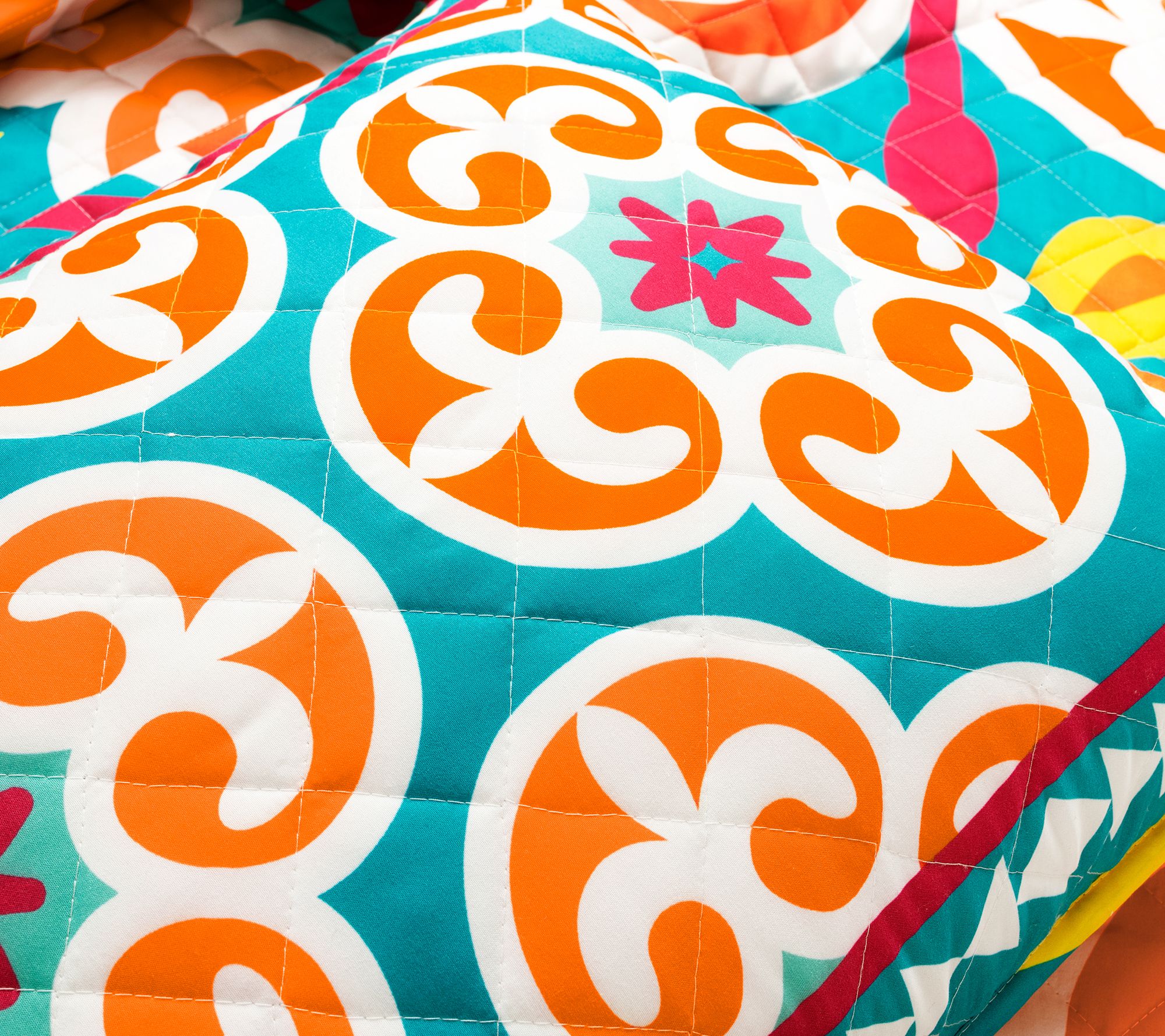 No more drab bedrooms! The Boho Floral quilt set is designed with a vibrant palette of colors and reverses to another bold pattern to keep your space bright and cheery. From Lush Decor.
