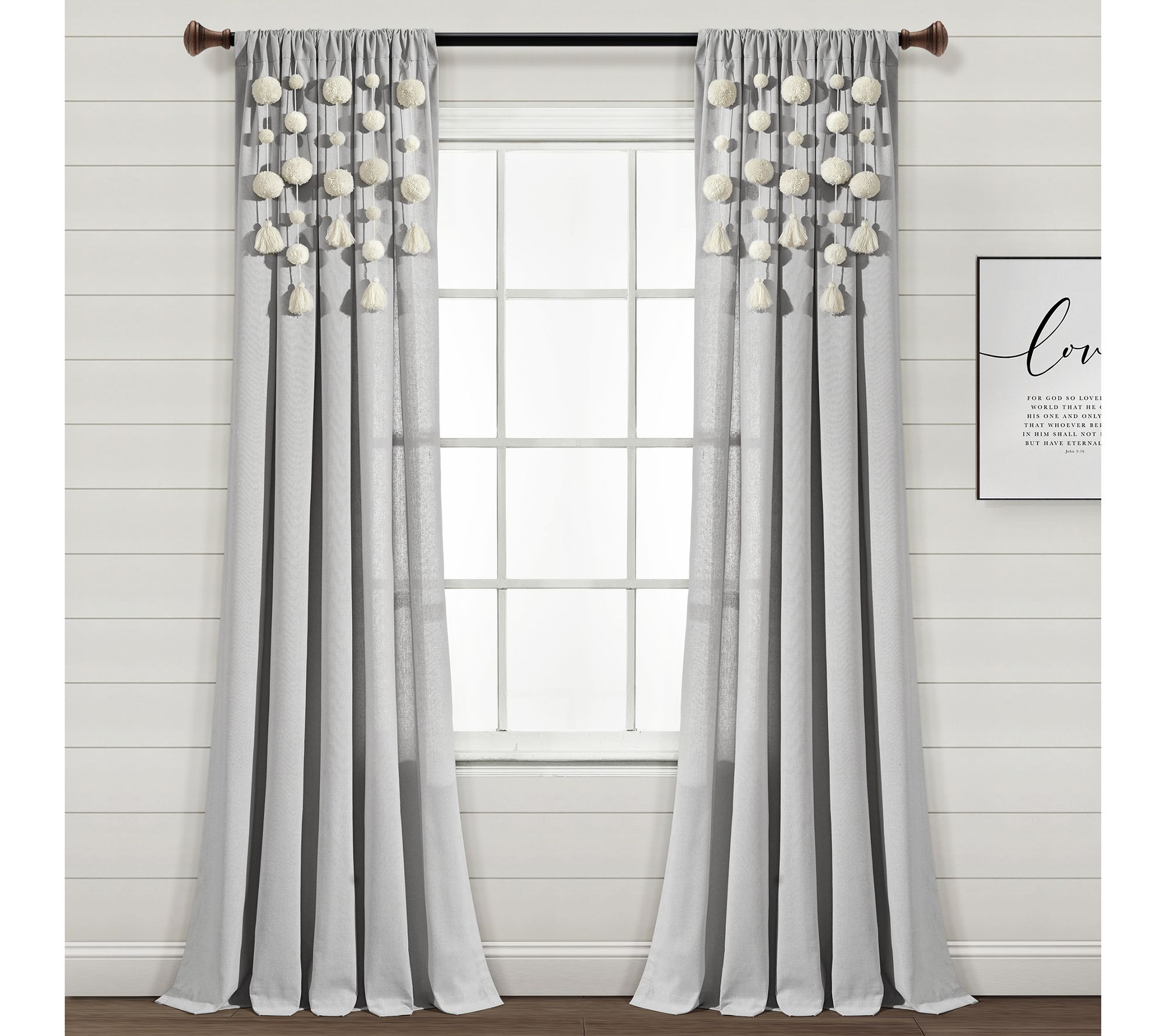 Boho Pom-Pom Tassel Linen Window Panel 52x95 byLush Decor
