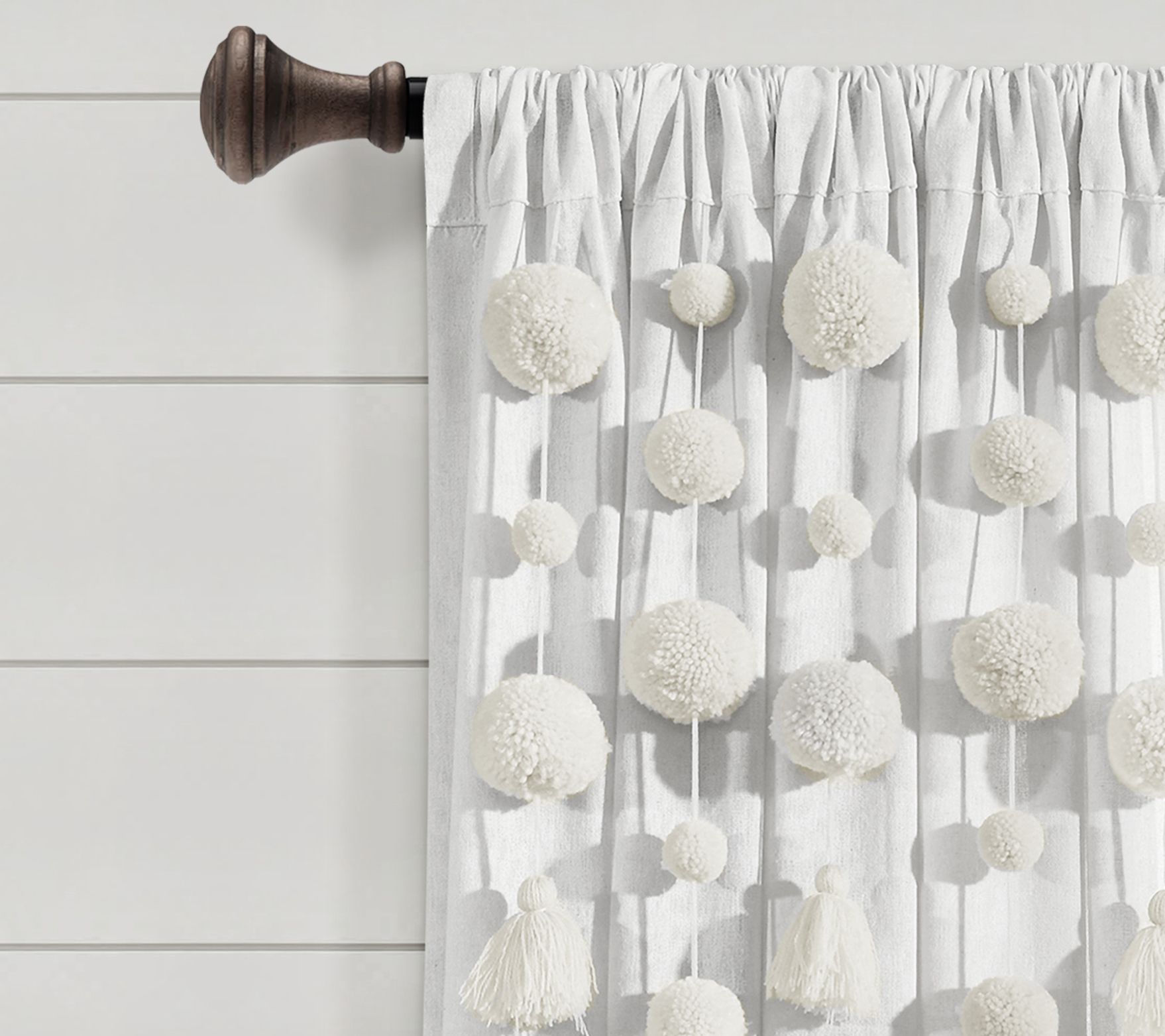 Dress your windows up with the whimsical appeal of these curtains featuring a cascading array of pom-poms at the top for a textured look that's sure to please. From Lush Decor.