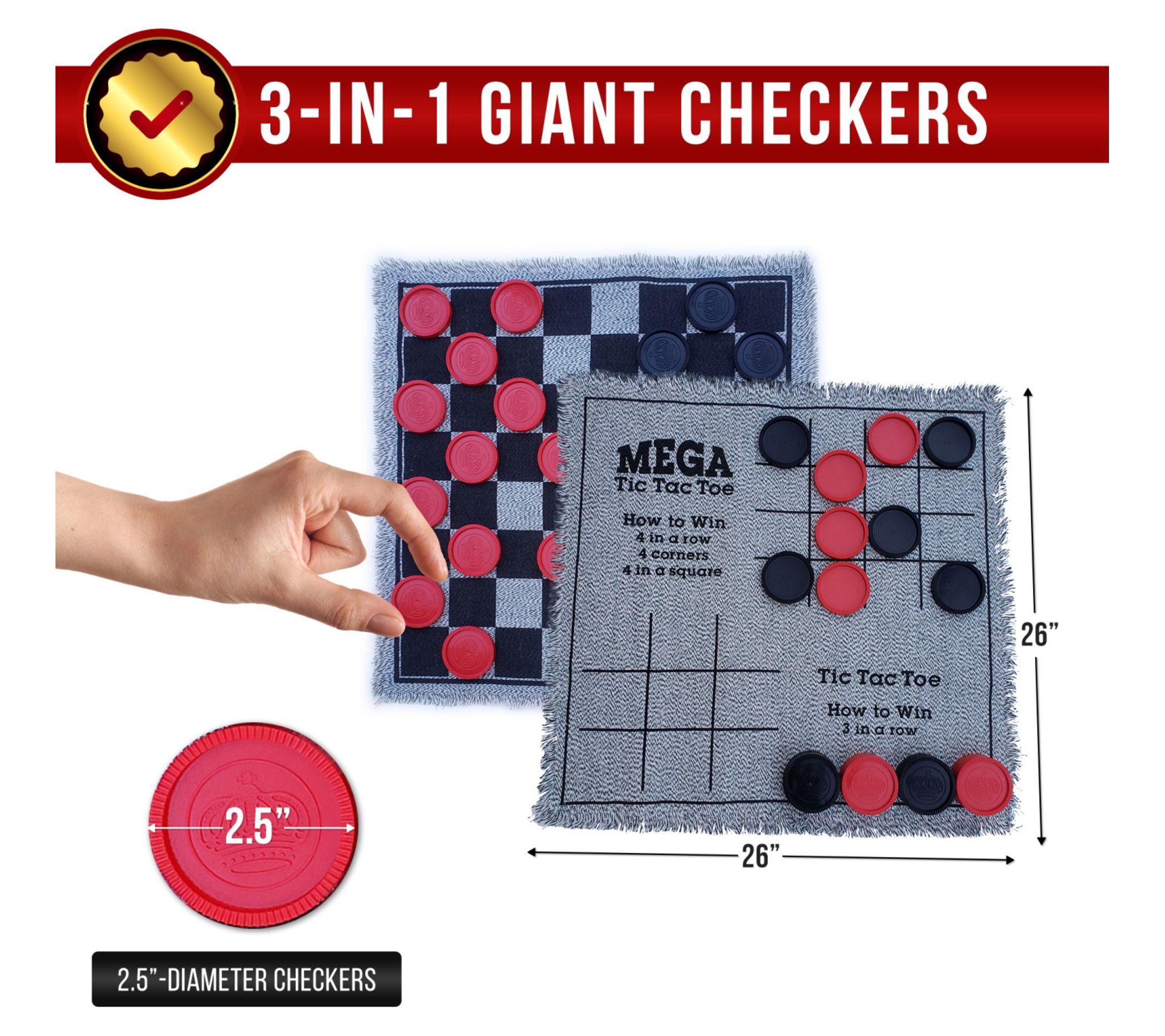 Bolaball 3-In-1 Giant Checkers Game W/ Reversible Rug