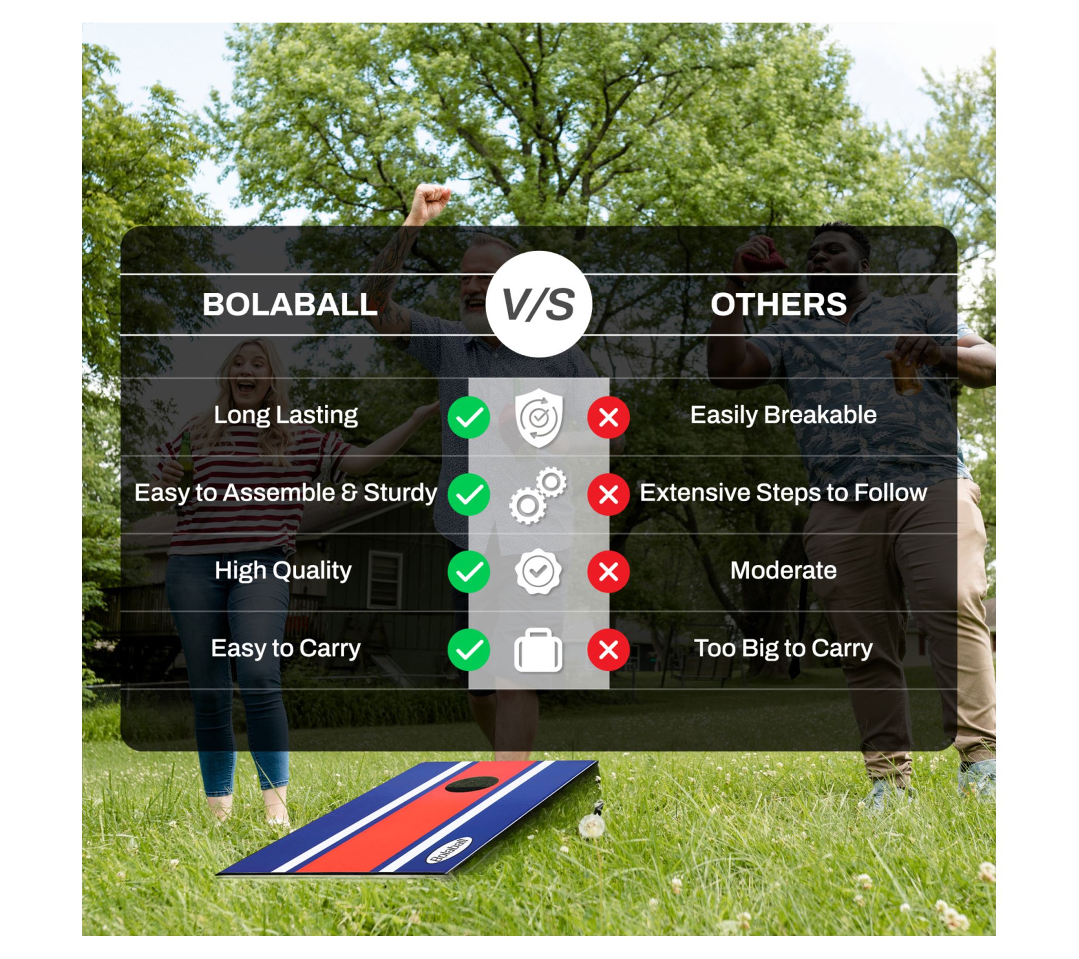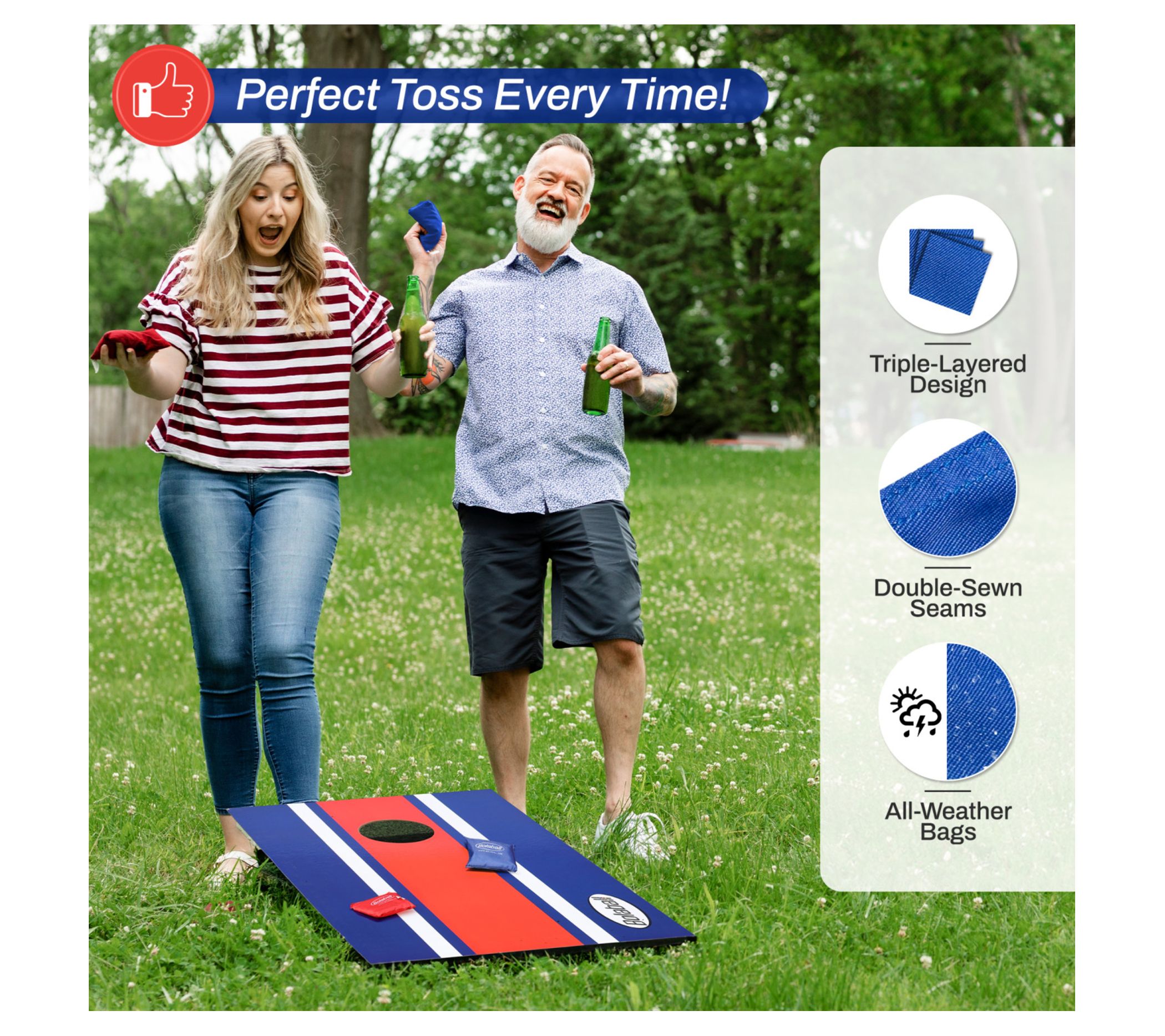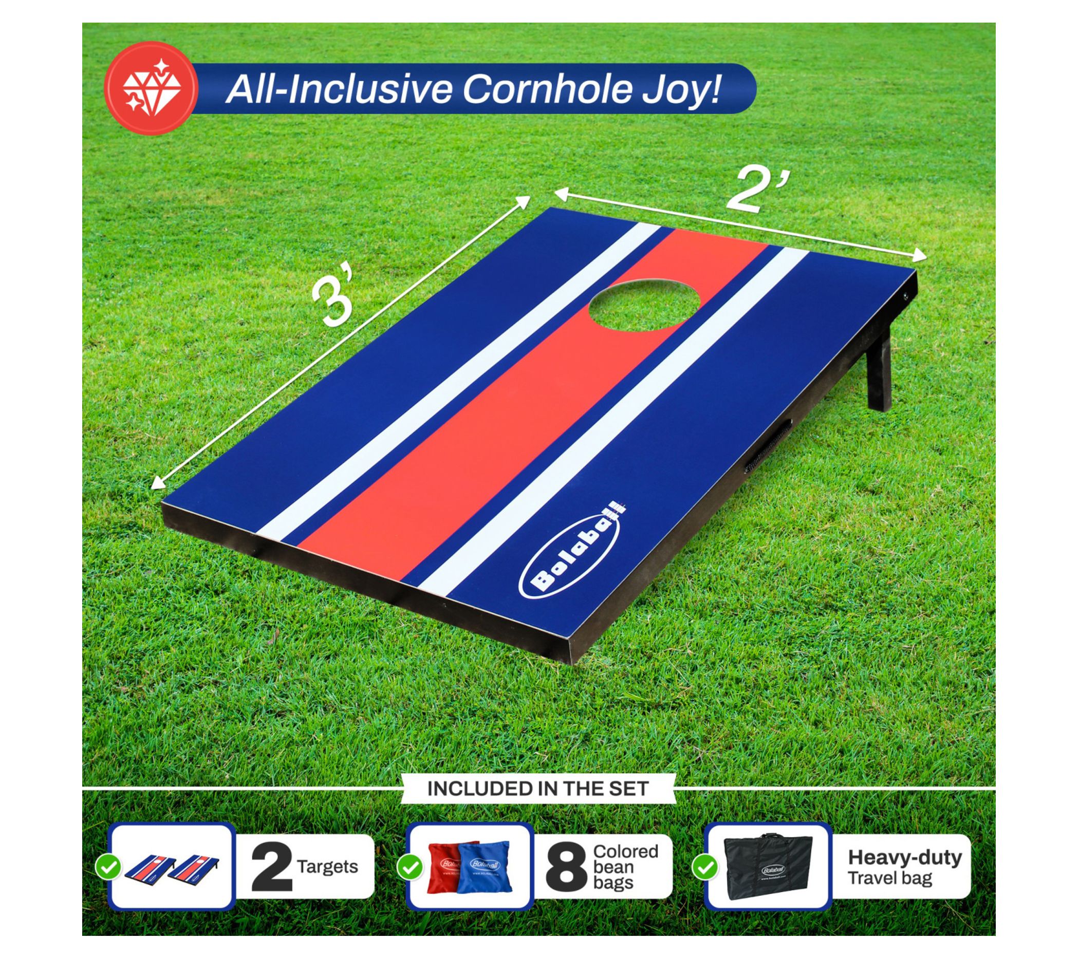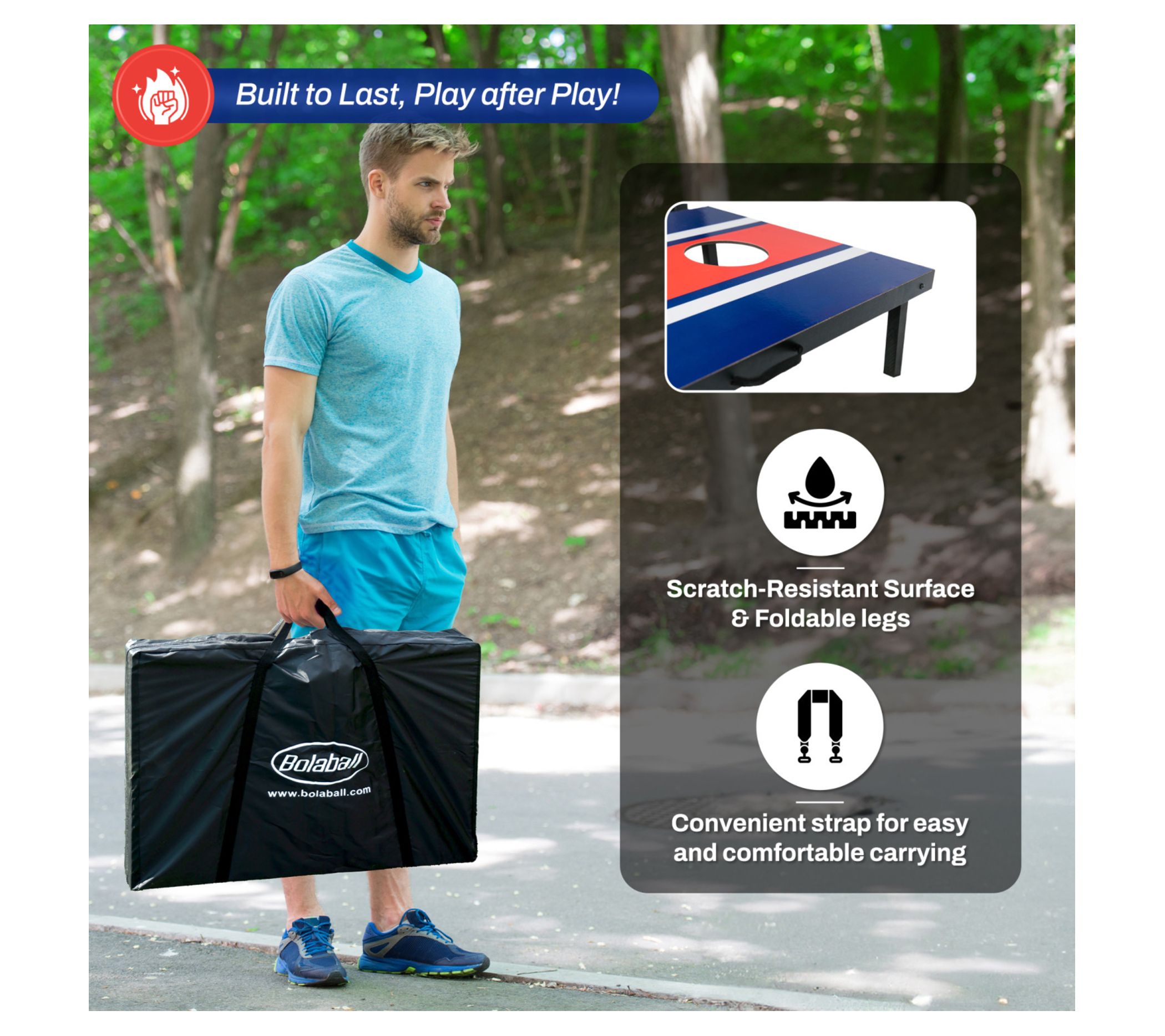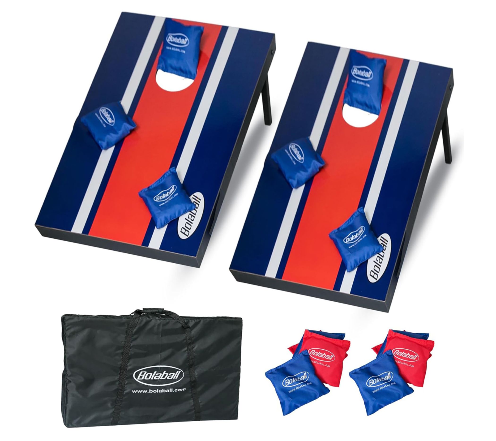 Enjoy endless fun with the Bolaball wooden bean bag toss game set. Perfect for backyard BBQs, camping trips, and tailgating, this set features foldable legs and a side-carrying handle for easy transport. With two targets and eight durable bean bags, it's designed for both indoor and outdoor play, making it a versatile addition to your game collection. From Bolaball.