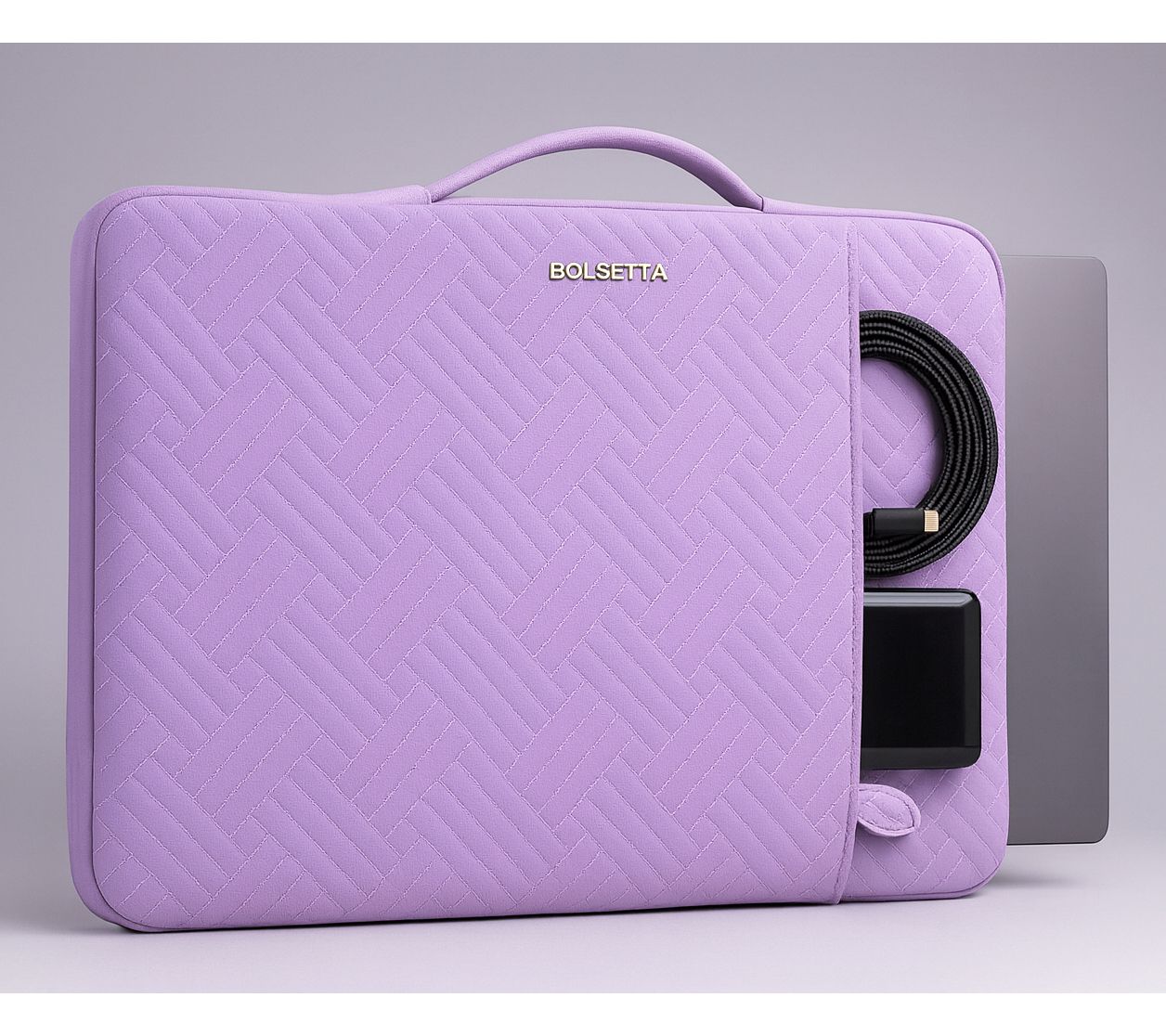 Commuting to campus, heading to work, or traveling across town is easier when your 17.3" laptop is cushioned inside this quilted carry case. The plush padded interior keeps your computer protected, while the handy front zippered pocket organizes your charger or mouse for quick access wherever your day takes you. From Bolsetta.