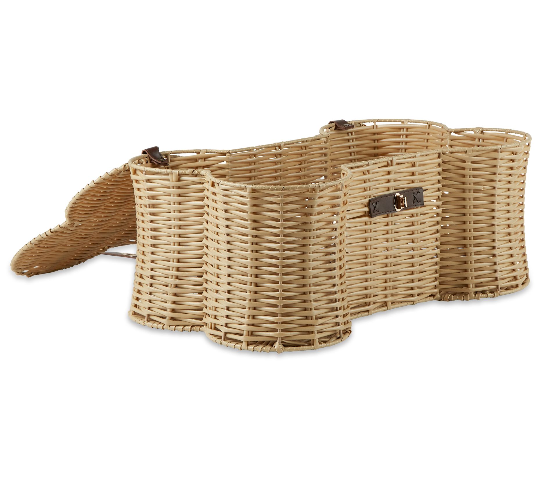 • Weave design with faux leather carry handle, closure strap, and hinges