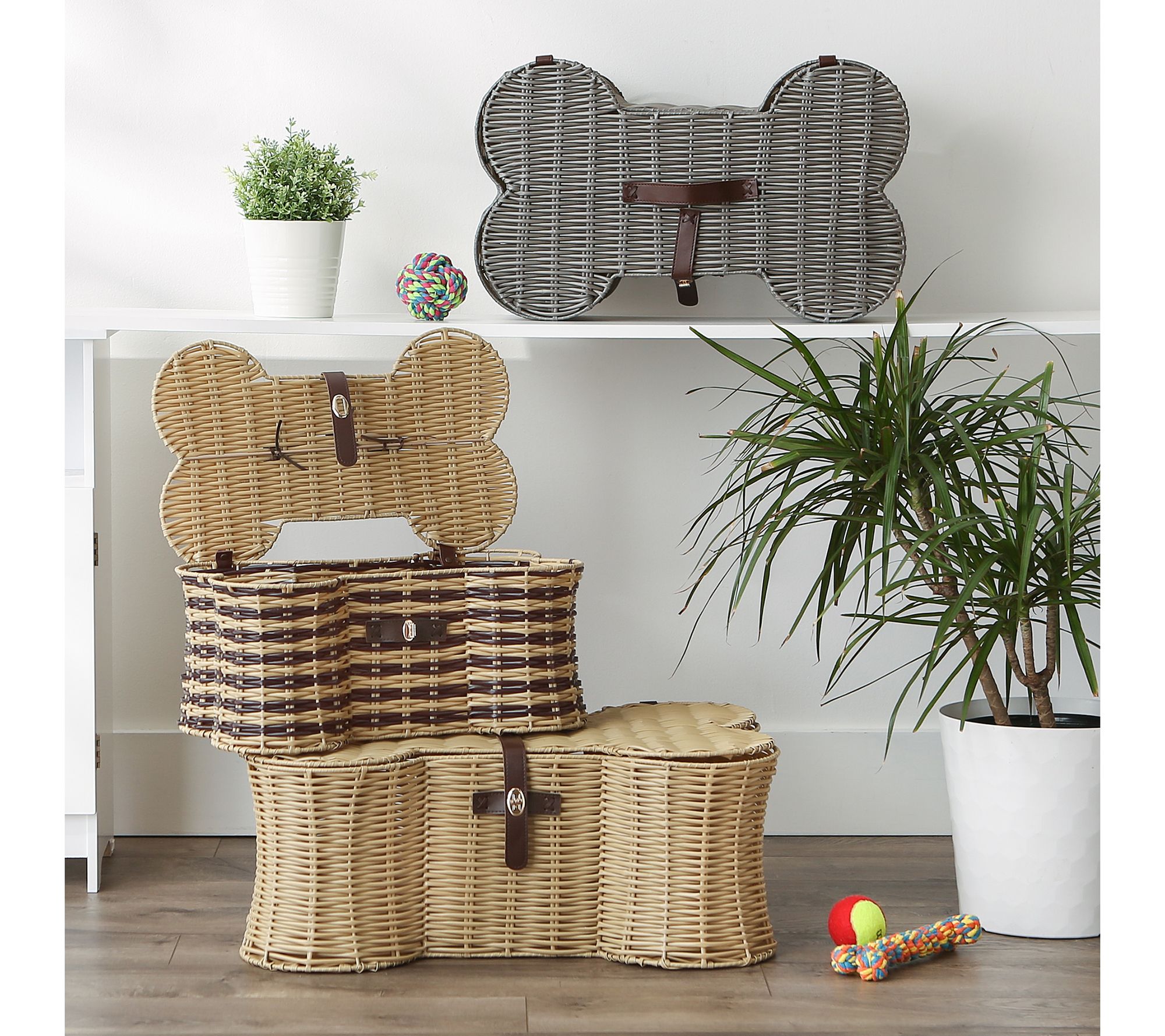Pet owners will fall in love with this bone-shaped basket, perfect for storing dry dog treats, leashes, collars, toys, blankets, and more. From Bone Dry.