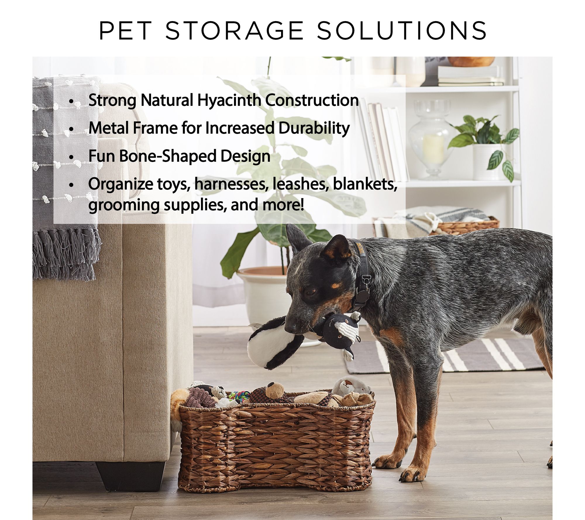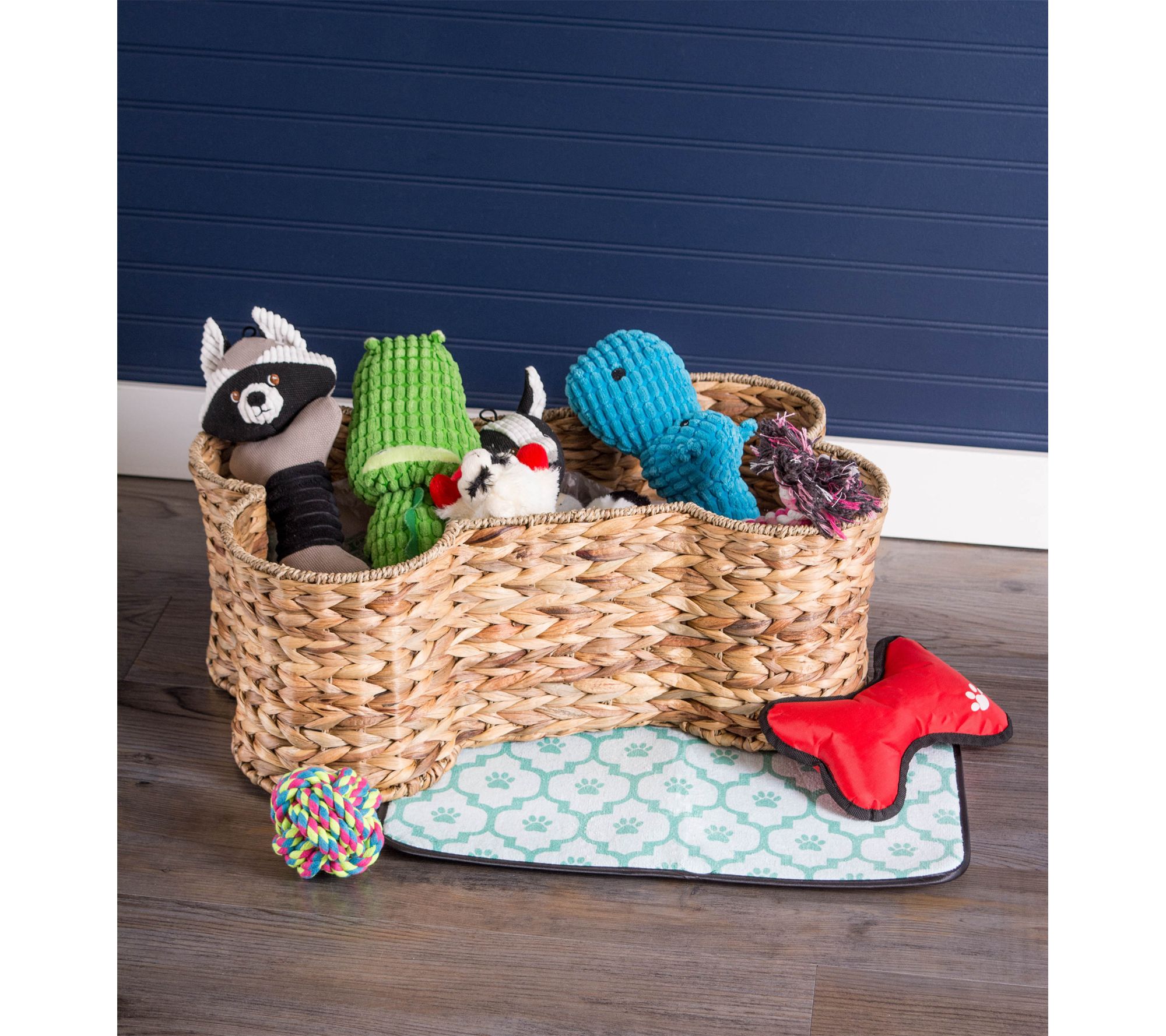 Keep your furry friend's essentials stylishly organized with this bone-shaped pet basket. The woven hyacinth design adds a playful touch to any room, making it easy to store leashes, toys, treats, and more while blending seamlessly with your decor. From Bone Dry.