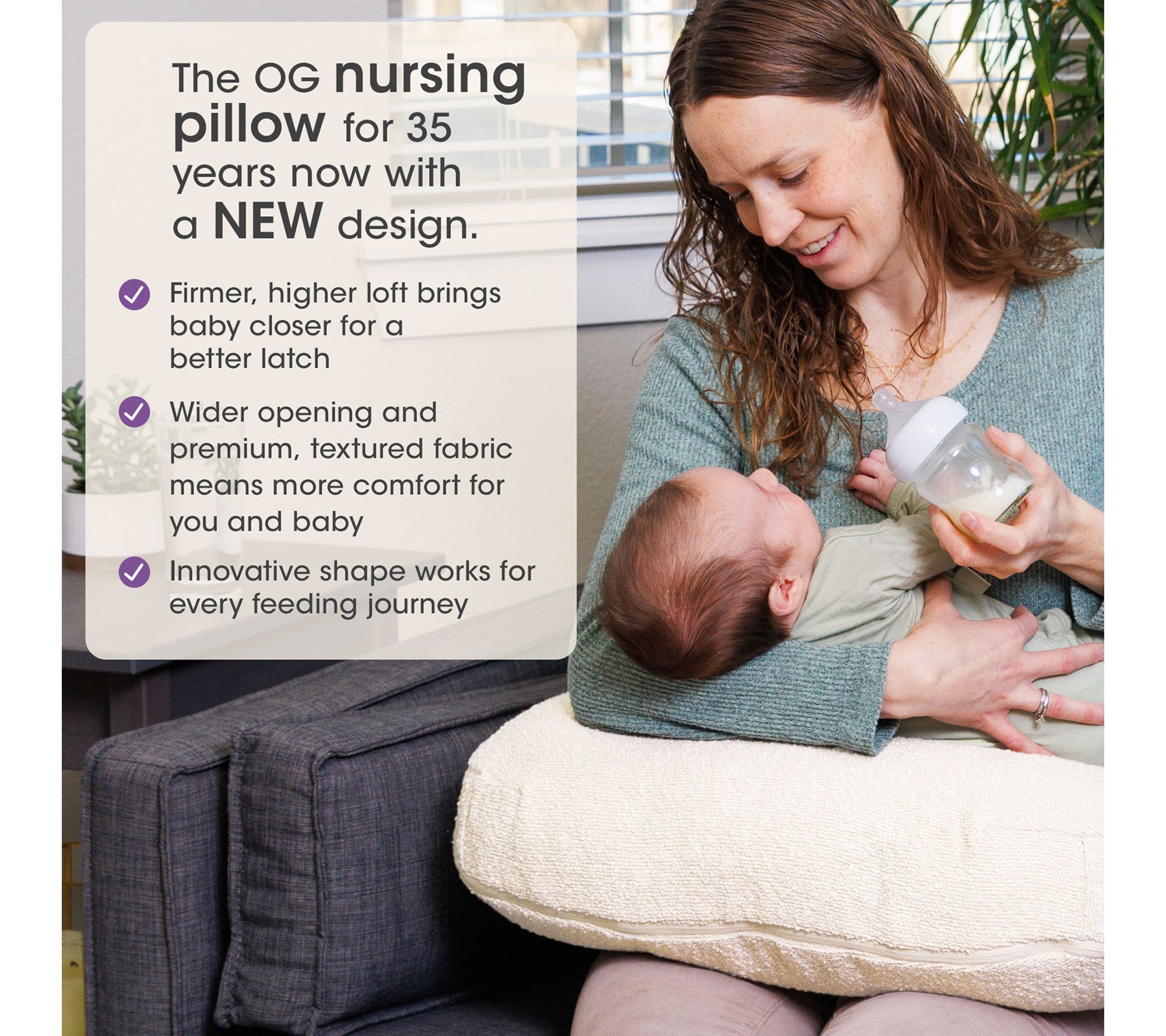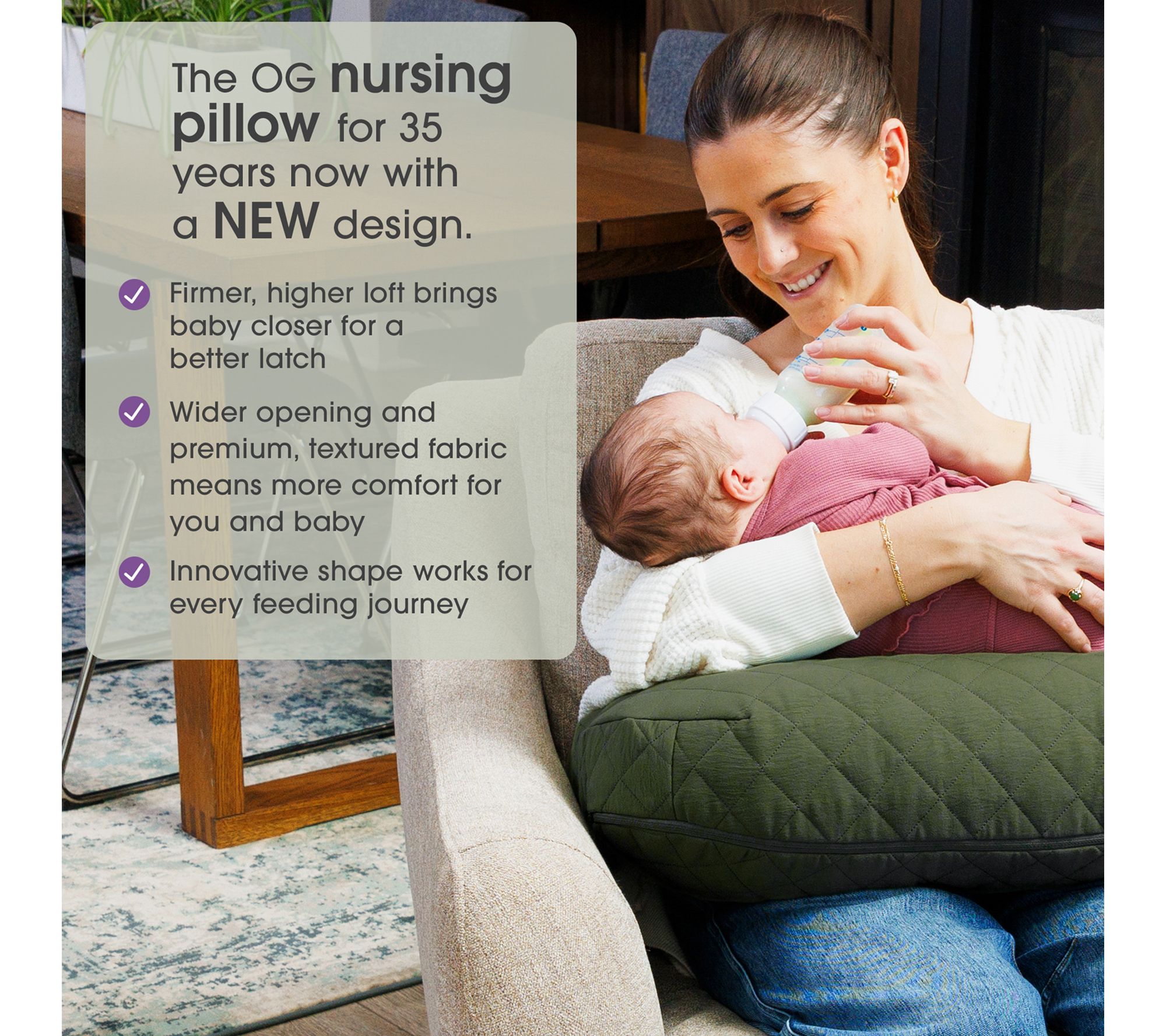 • Firmer, higher loft brings baby closer for a better latch