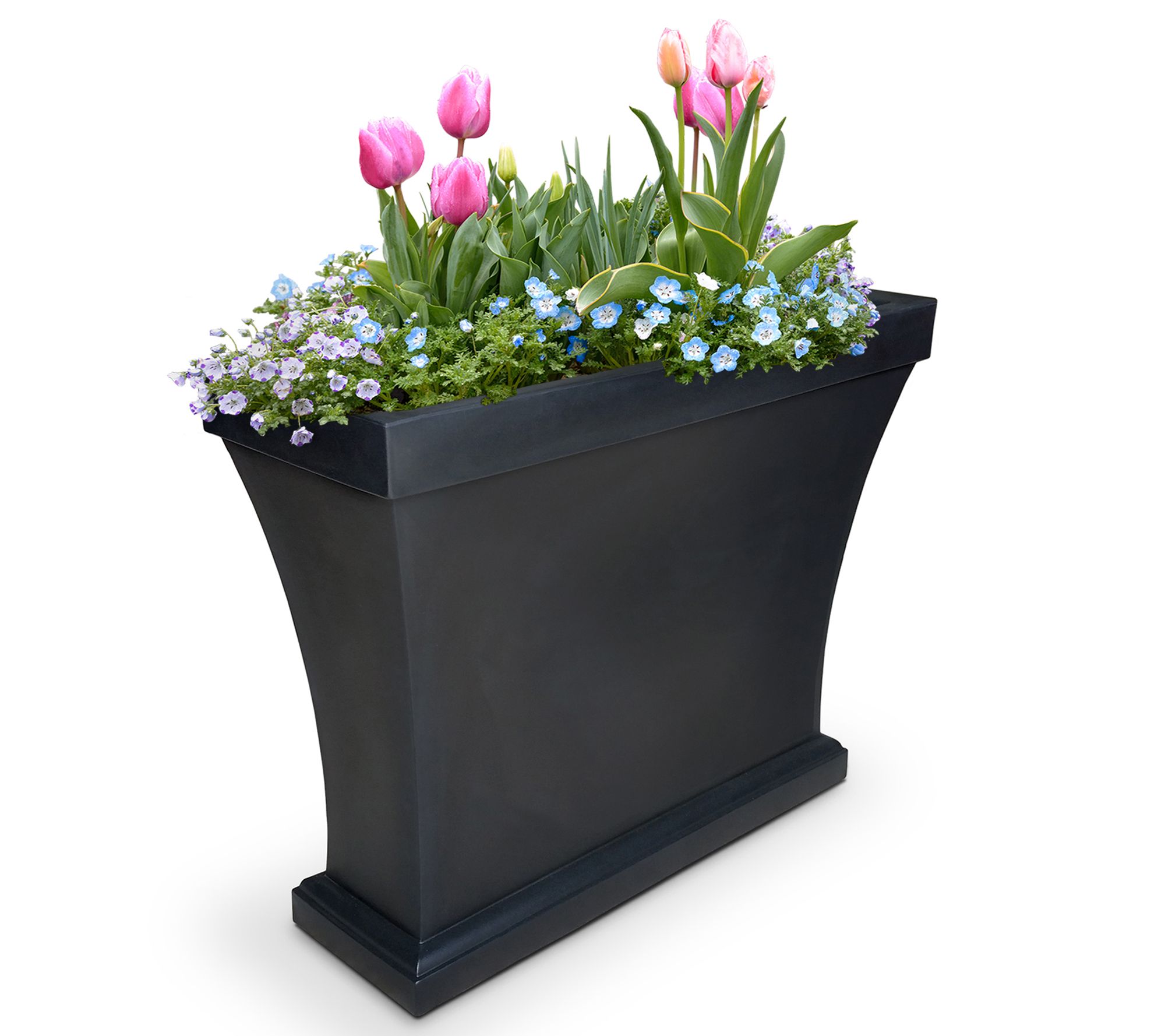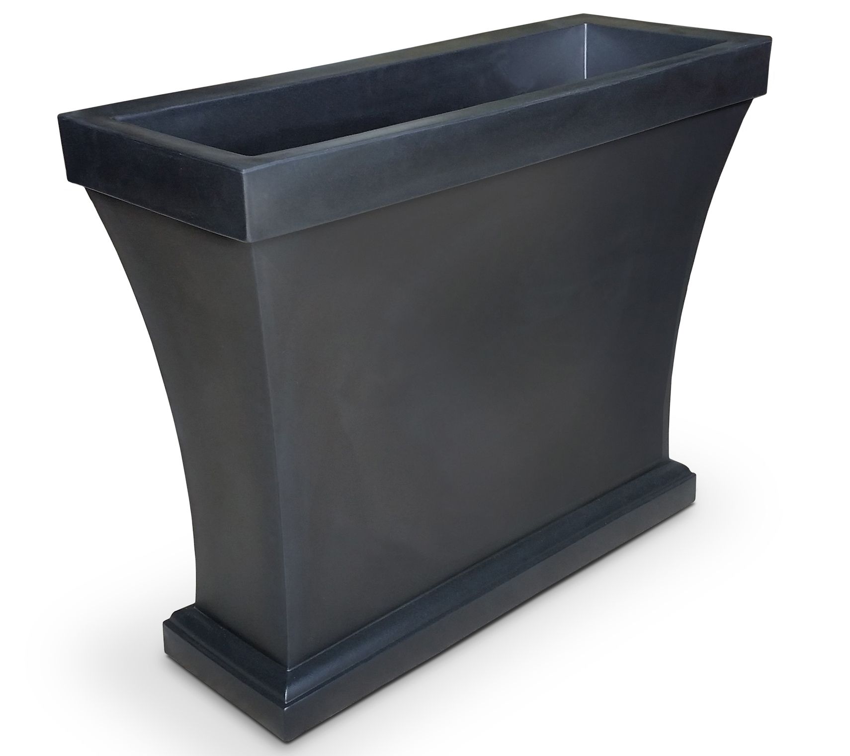 Tall and elegant, this Bordeaux trough planter is a stately addition to your front entrance, deck, or patio. It's narrow footprint makes it ideal for privacy dividers or as barriers for outdoor living spaces. Fill it with flowers, ferns, small trees, or any botanical beauty for a modern decorator look.