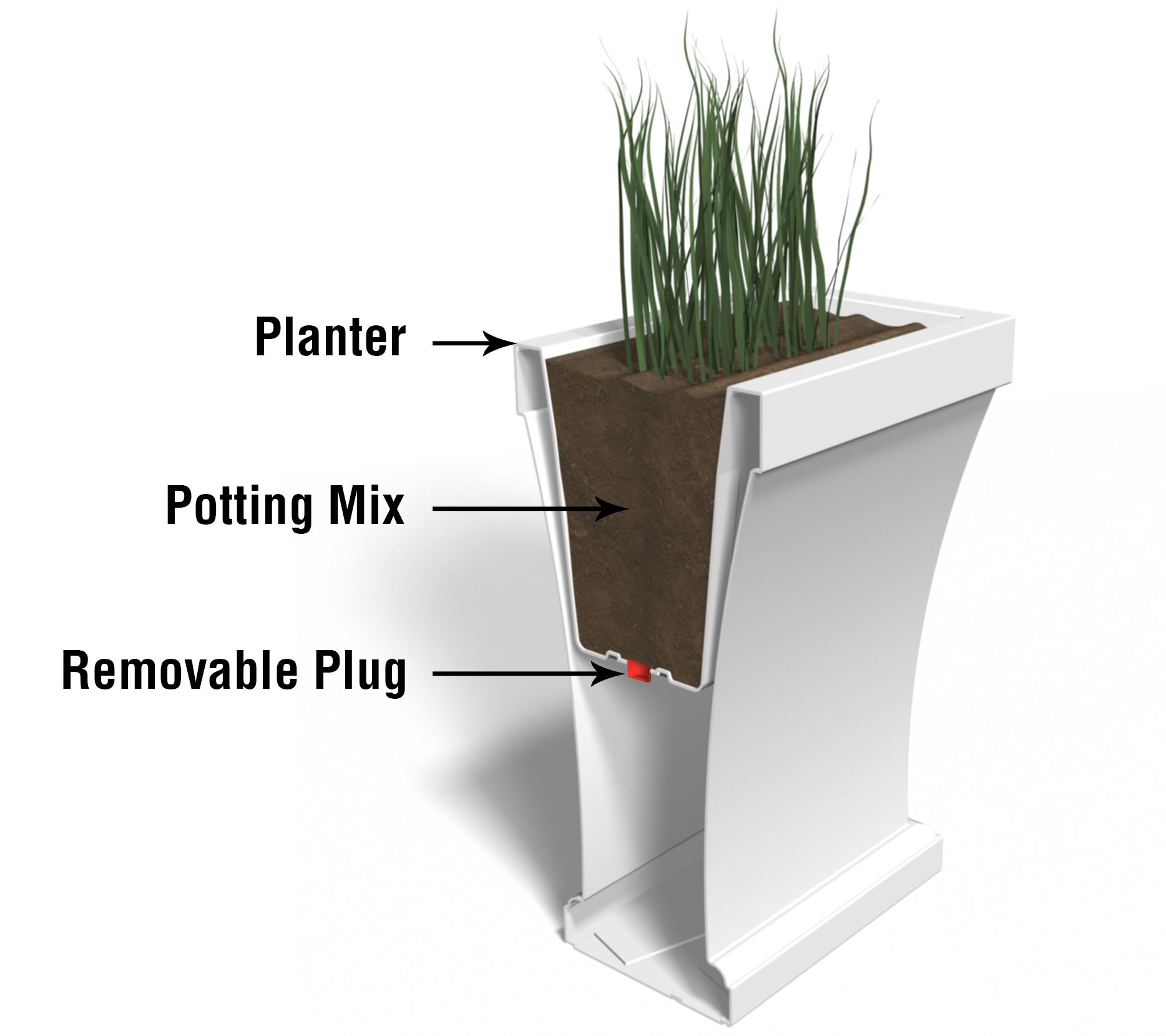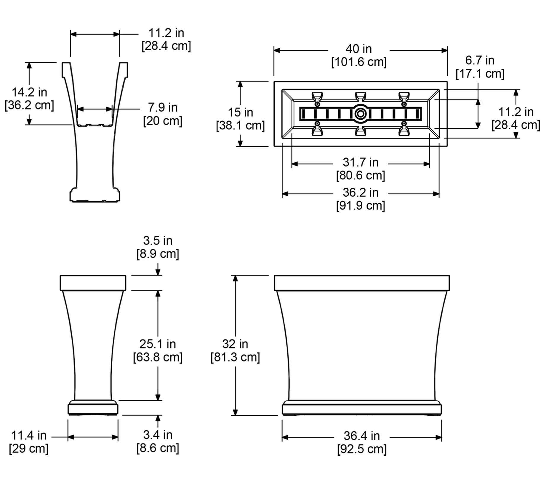 • Approximate measurements: Planter 40" x 15" x 32"; 17.5-gallon soil capacity