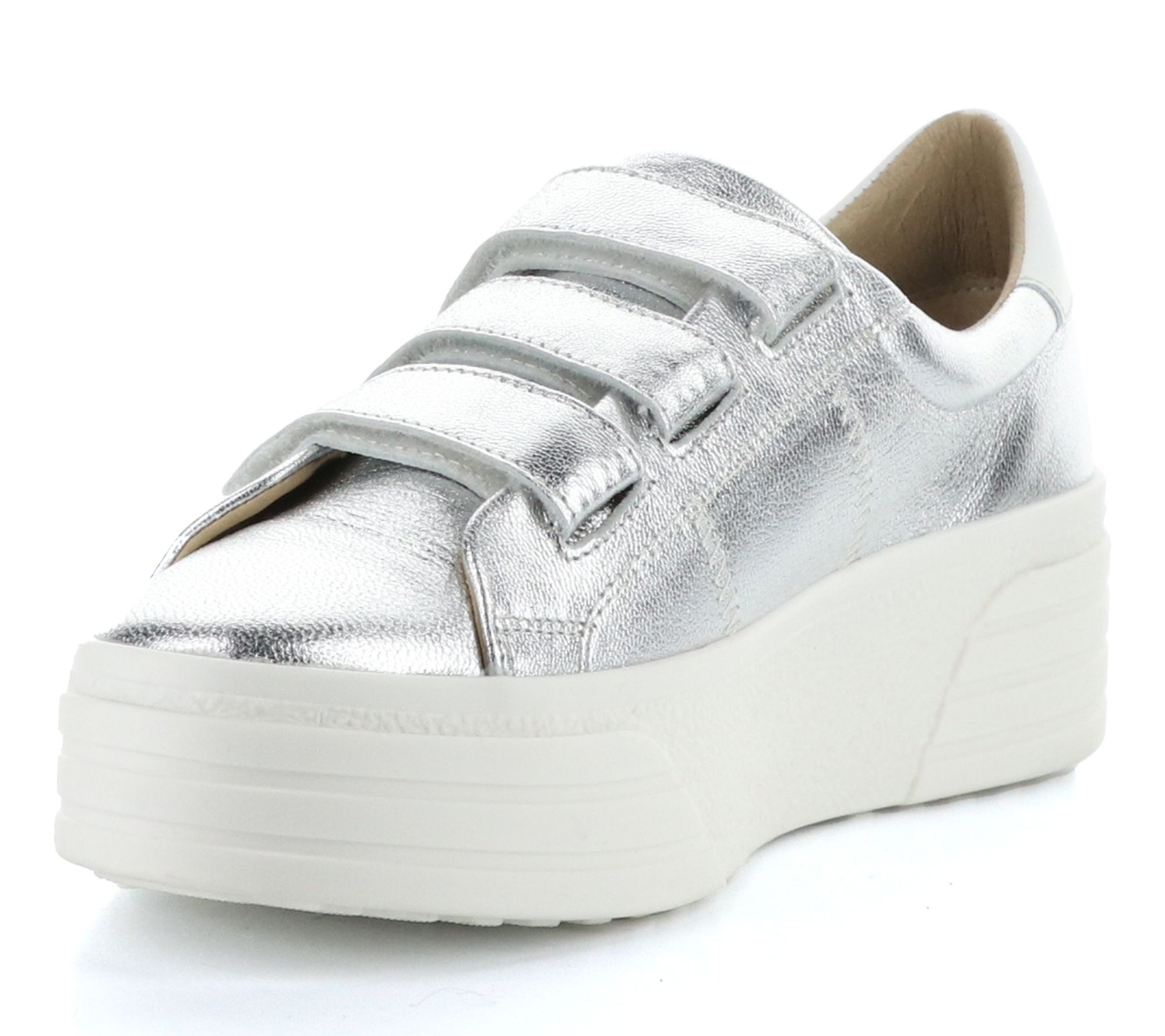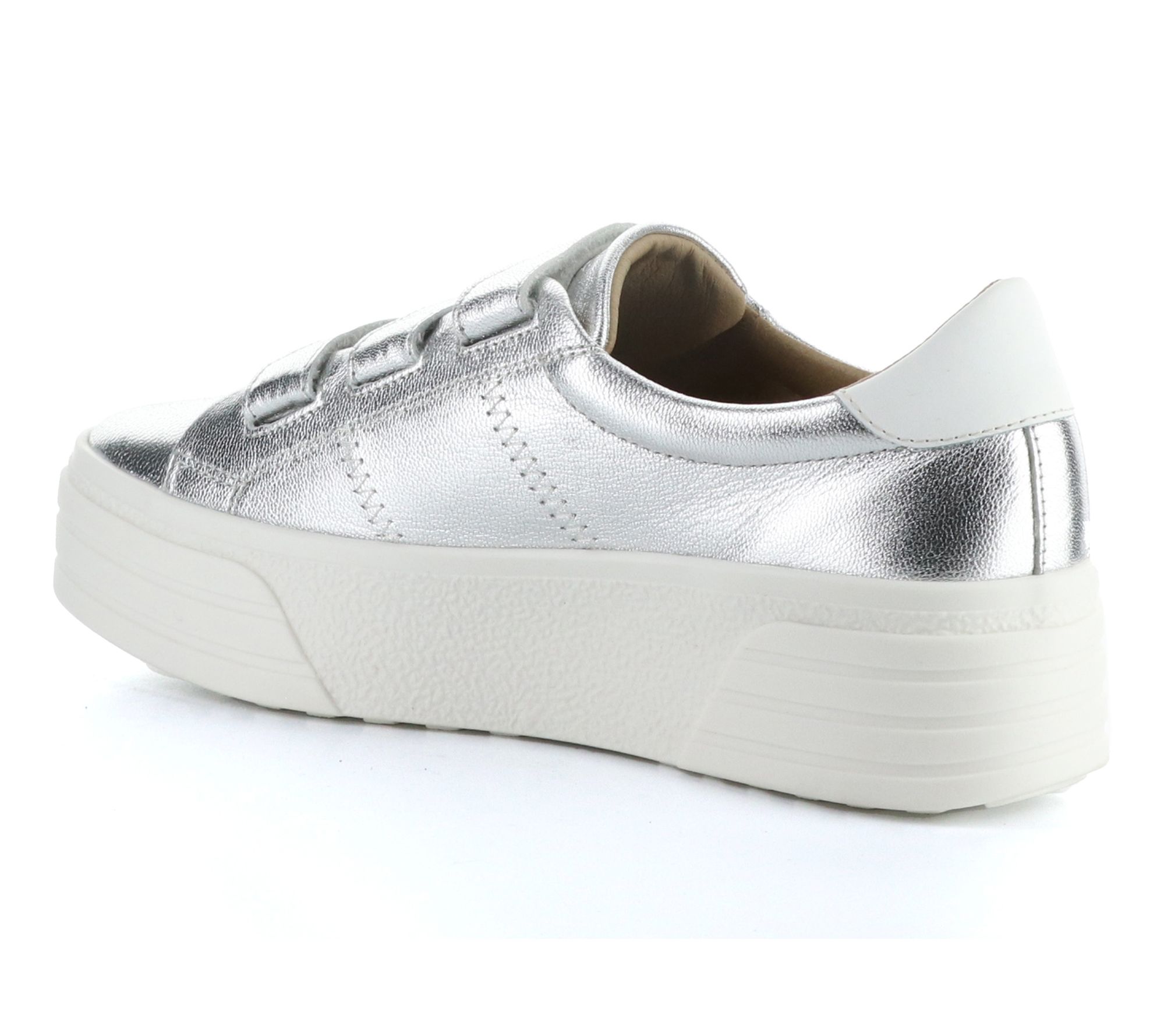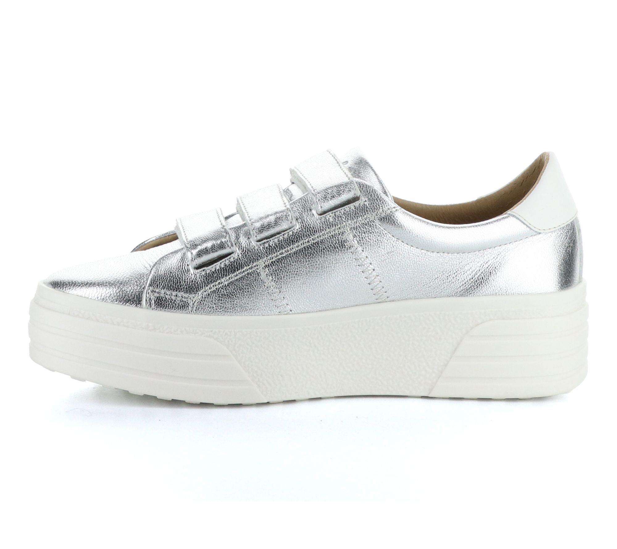 Hook-and-loop closure, rounded toe shape, stitching details, leather upper
