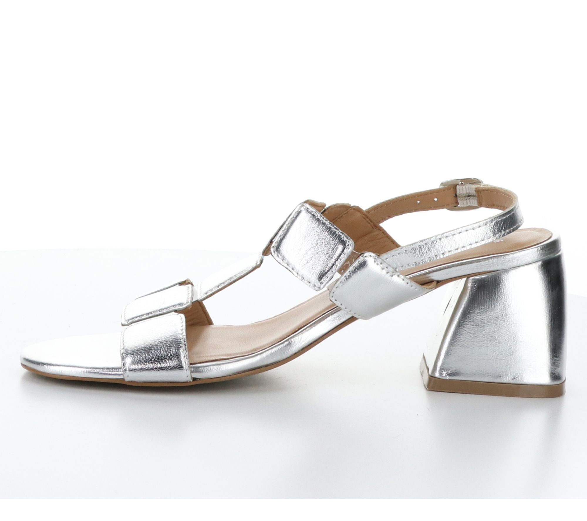Whether it's a summer soire or an afternoon stroll, these heeled sandals from Bos. & Co. will keep you stylish and comfortable. The shimmering metallic buckles add a touch of elegance, while the rounded toe and heel-to-toe padded insole ensure a perfect fit for any occasion.