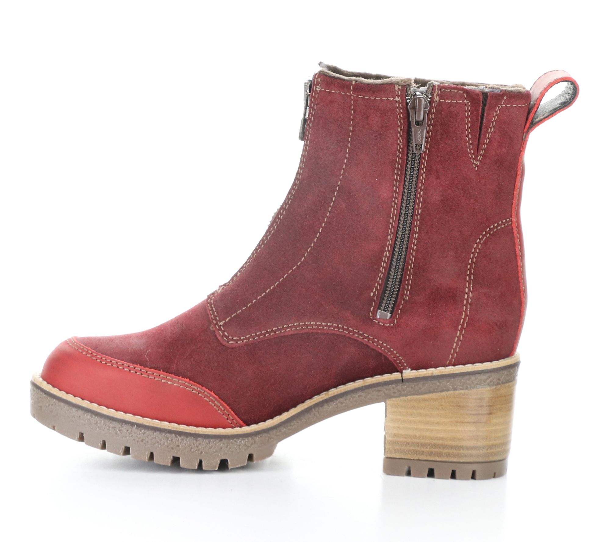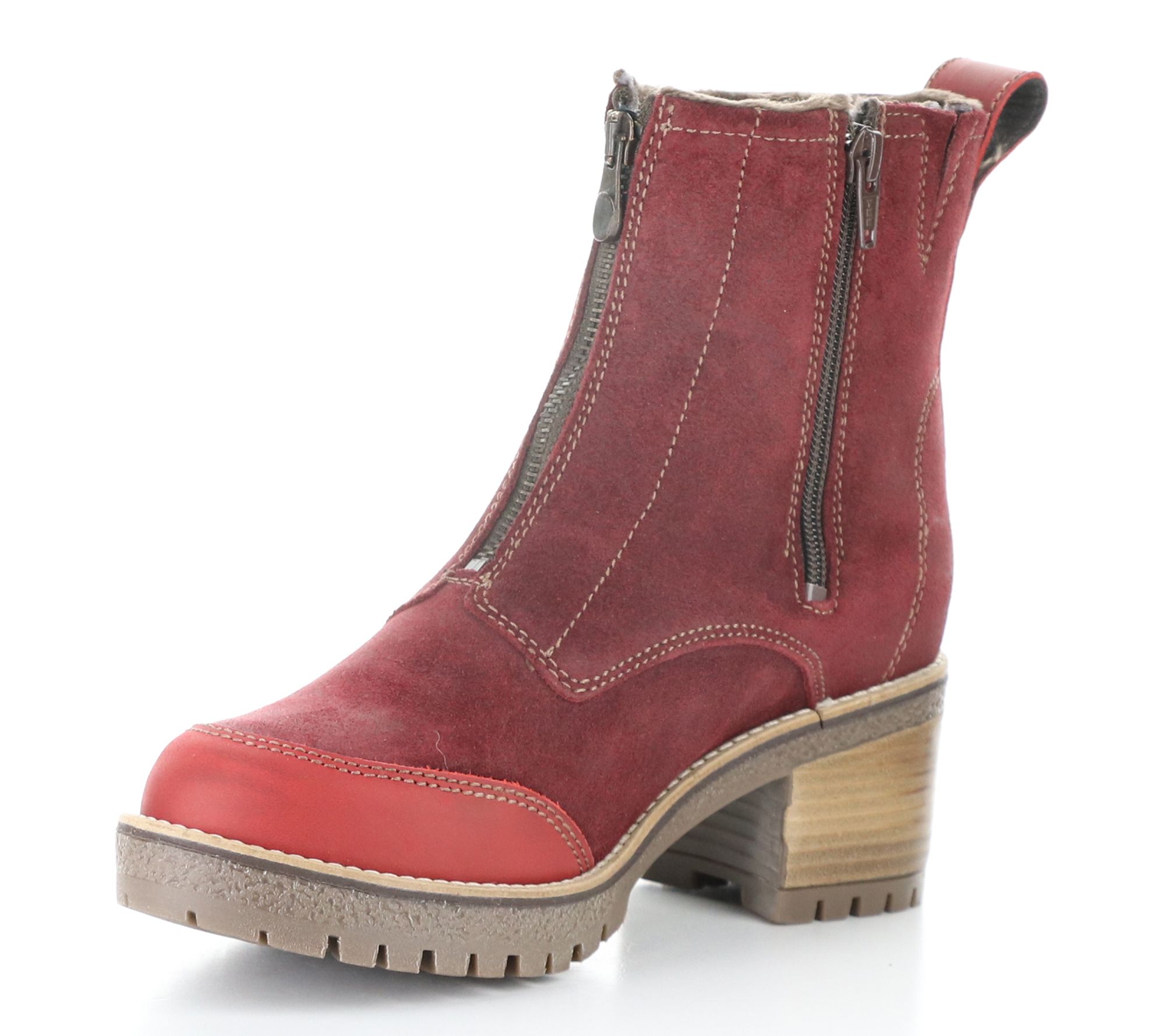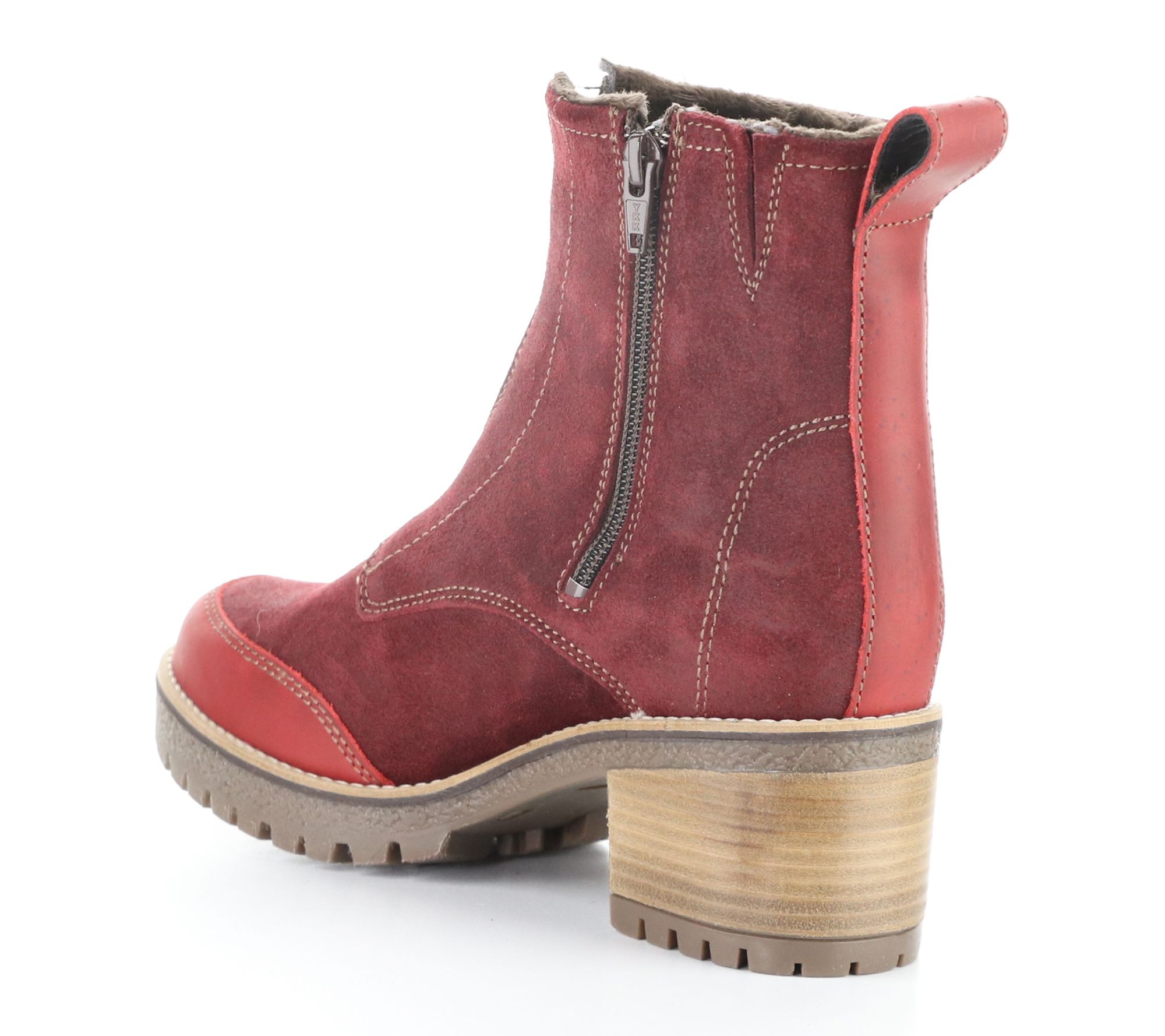 • Suede upper; closed toe; side zipper; pull tab at heel; stitched outsole
