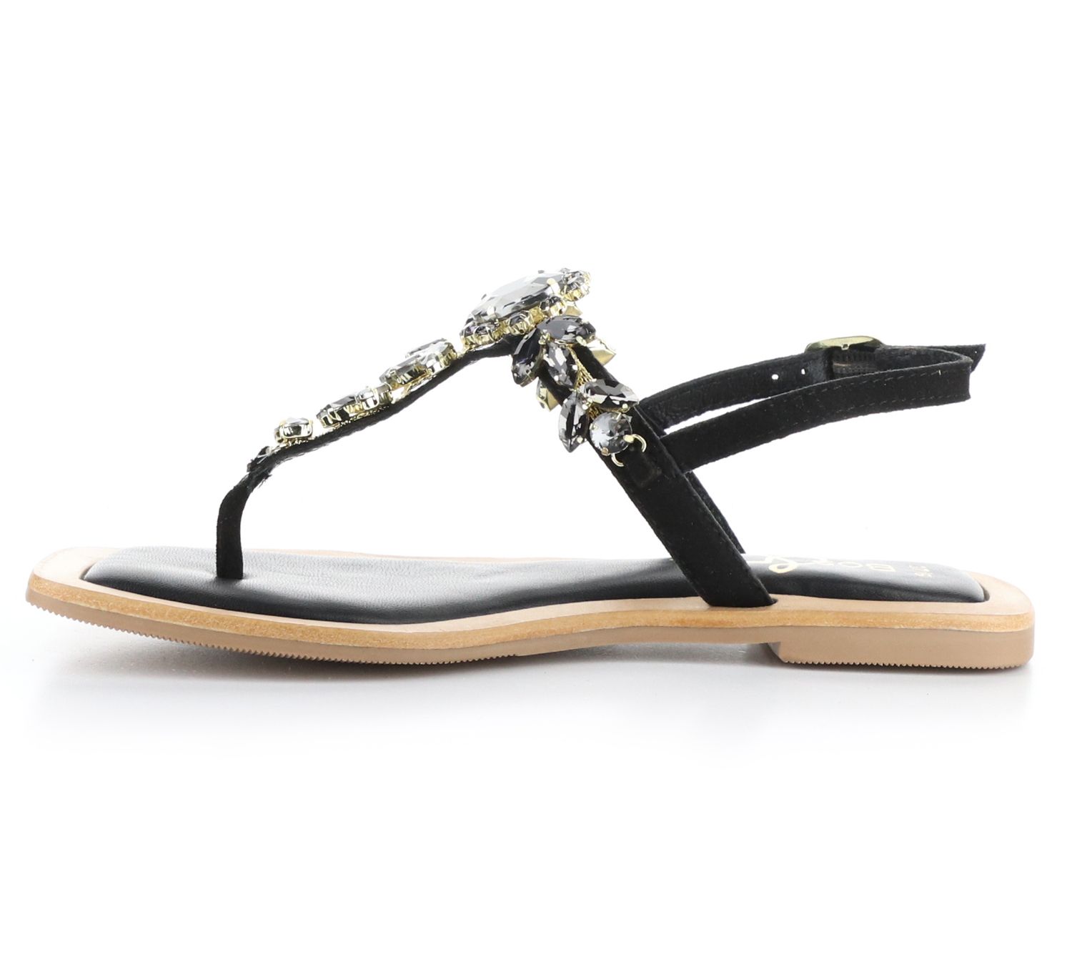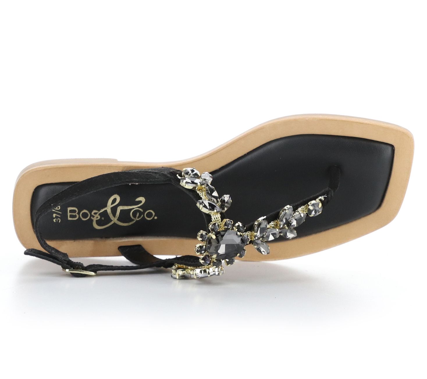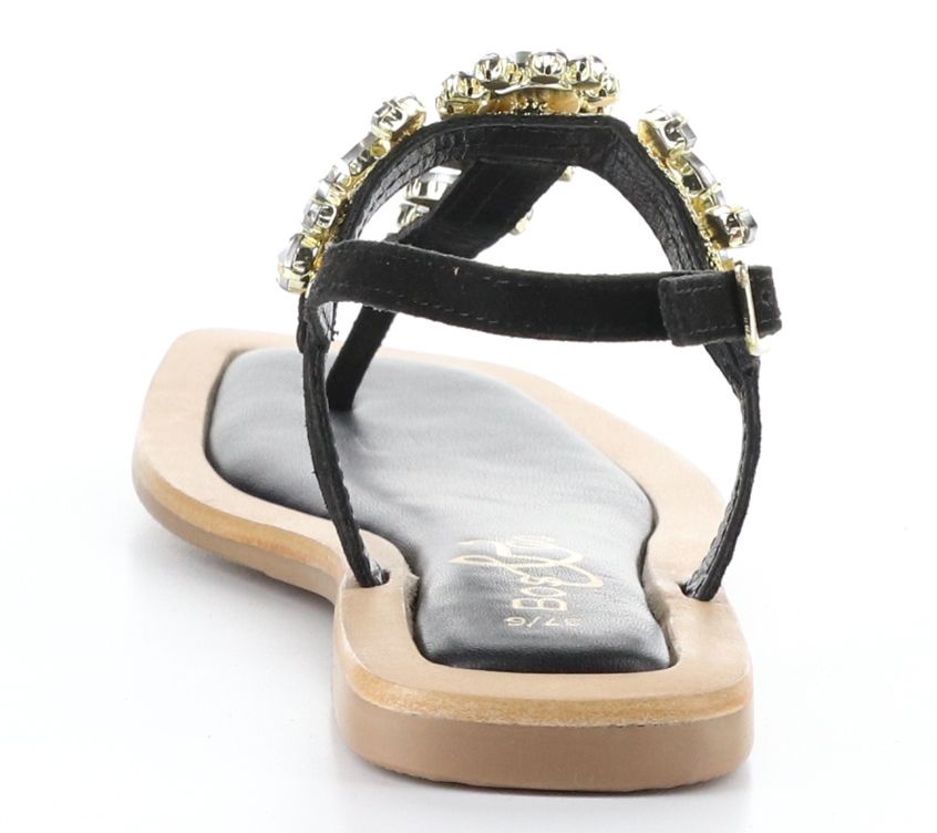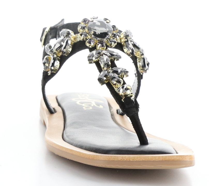 • Buckle closure, toe post, padded leather sock lining, embellished, square toe