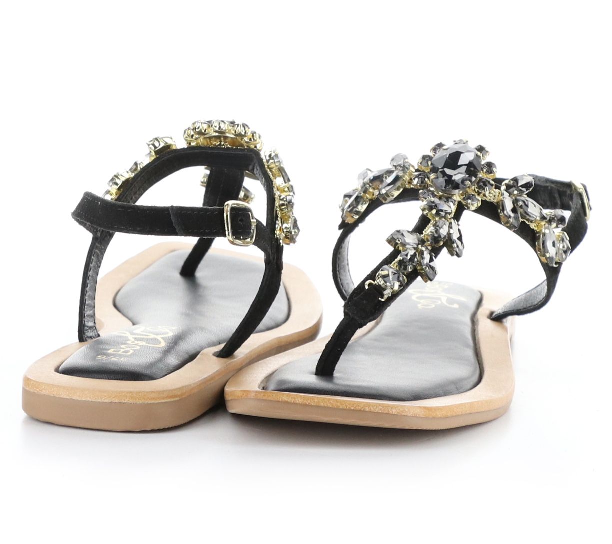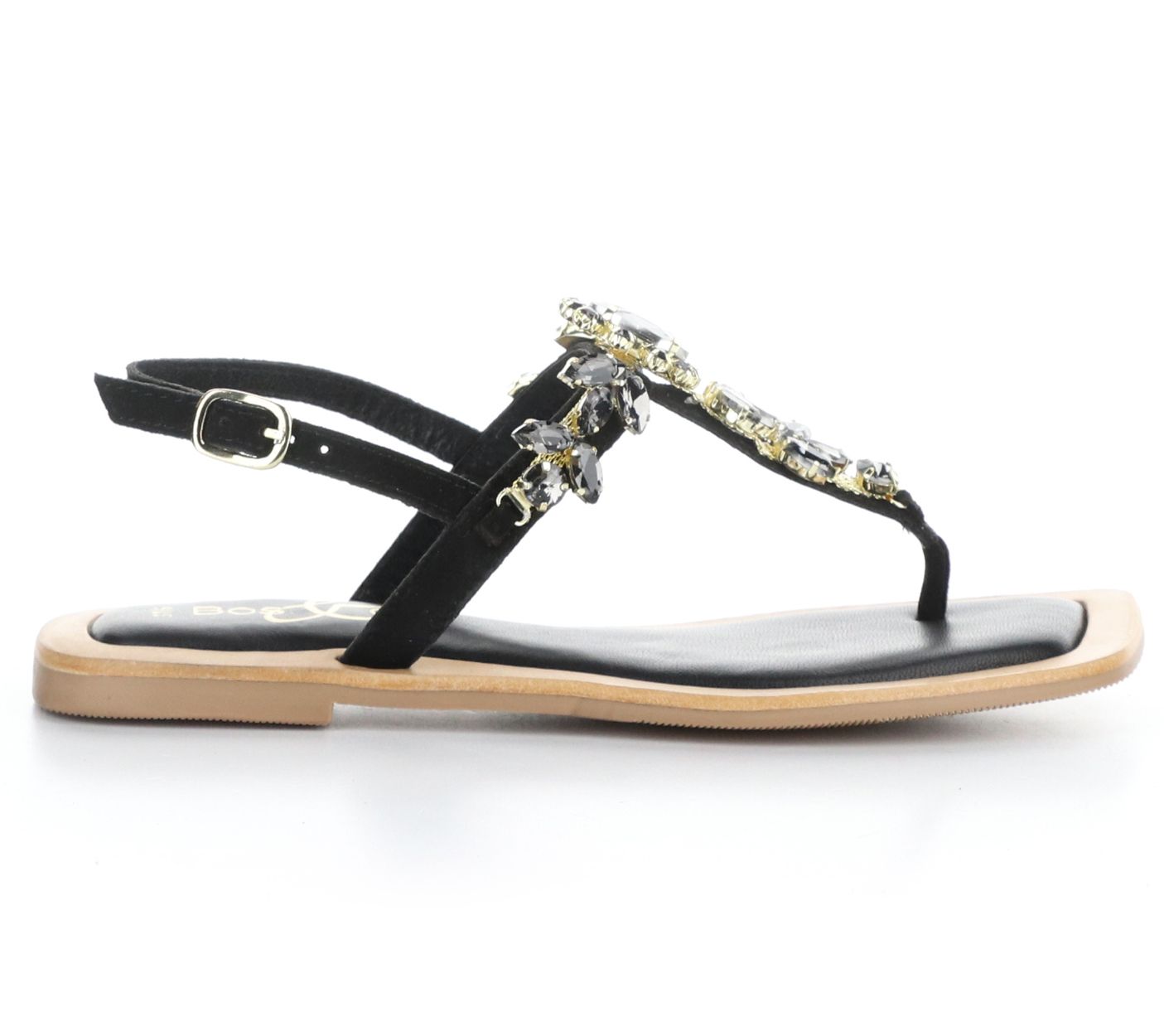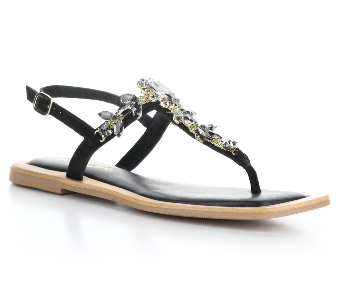 • Buckle closure, toe post, padded leather sock lining, embellished, square toe