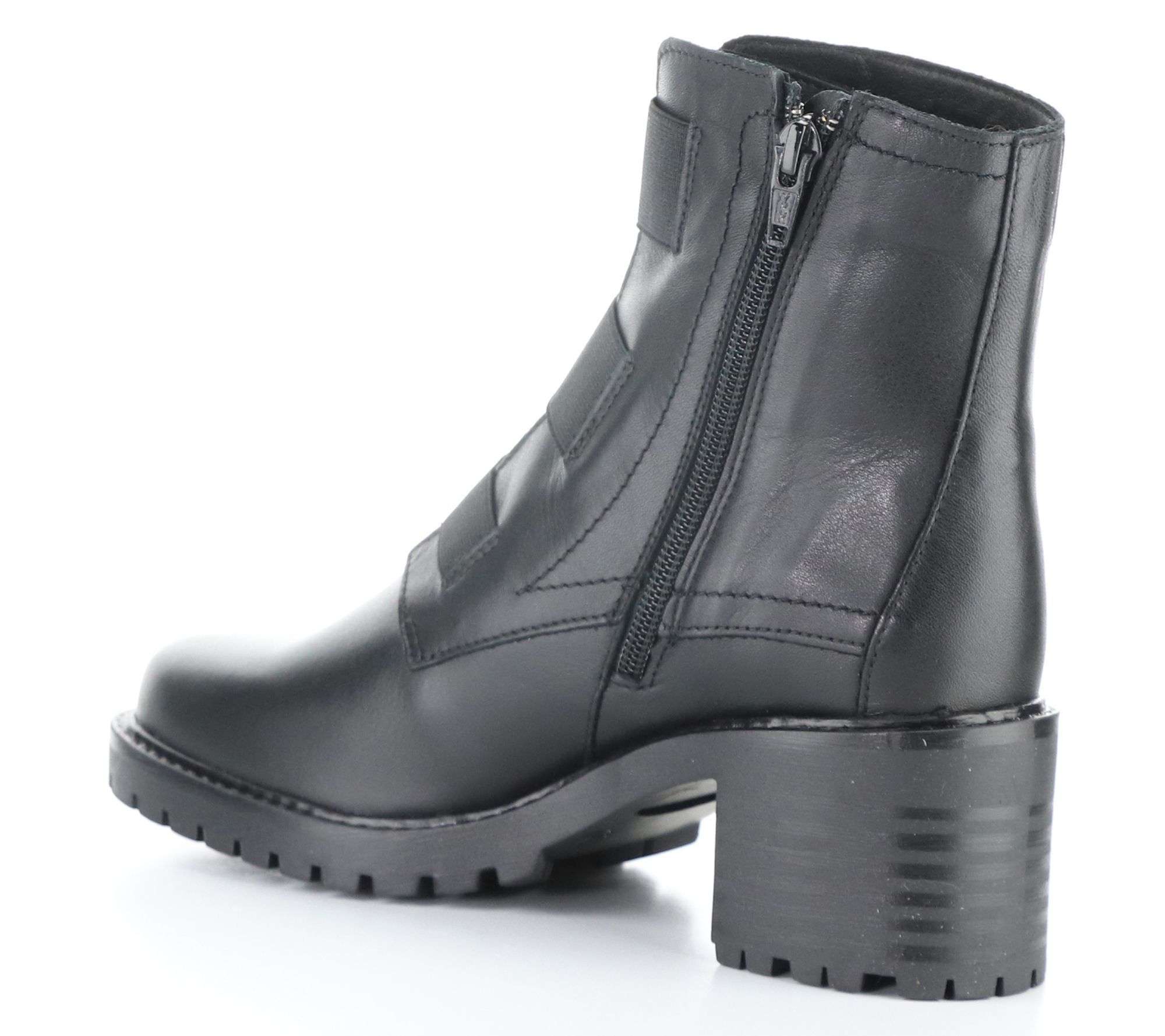 • Inside zipper, pull tab, round toe