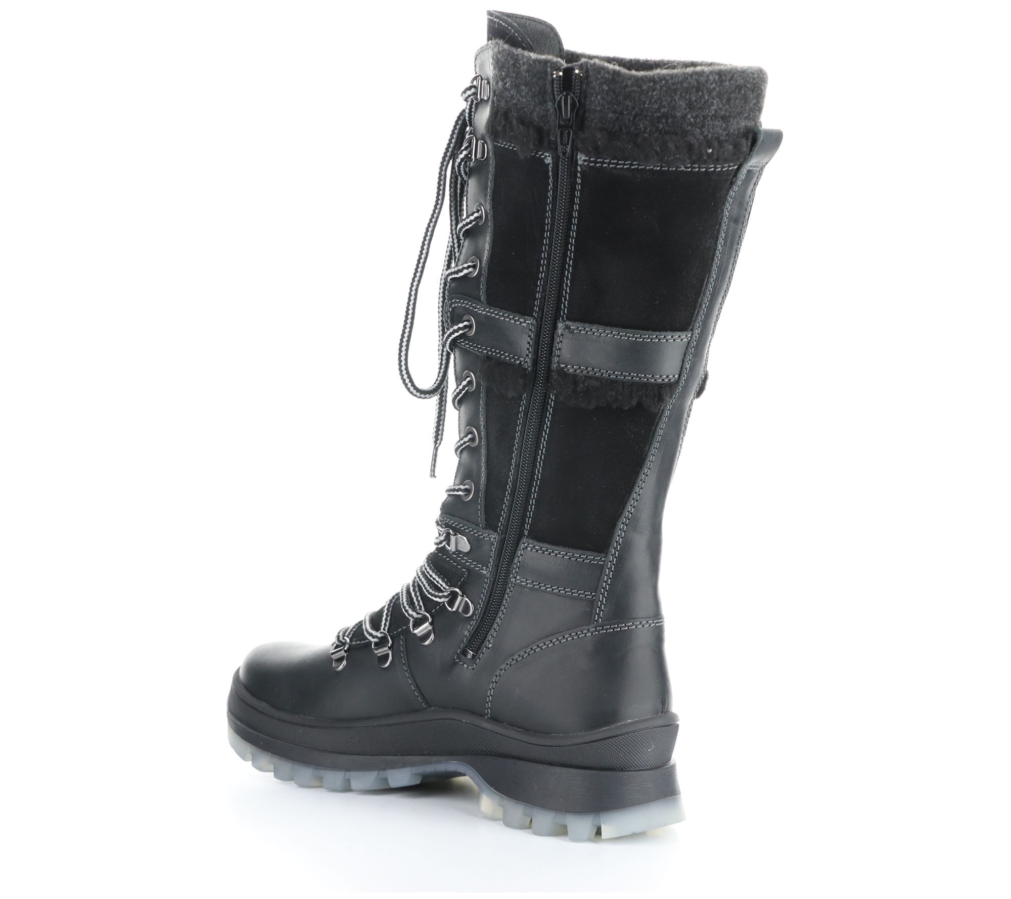 • Side zip and lace-up closures, rounded toe
