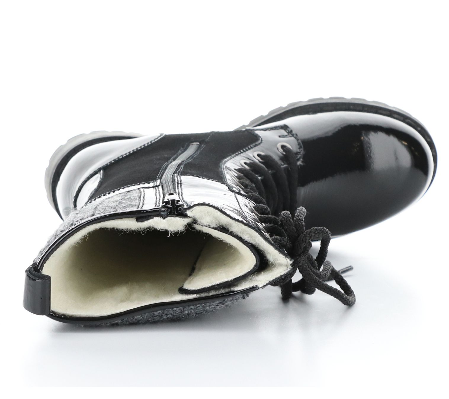 Face chilly days in style with these cozy lace-up patent boots that keep your tootsies toasty as you command the sidewalk. From Bos. & Co.