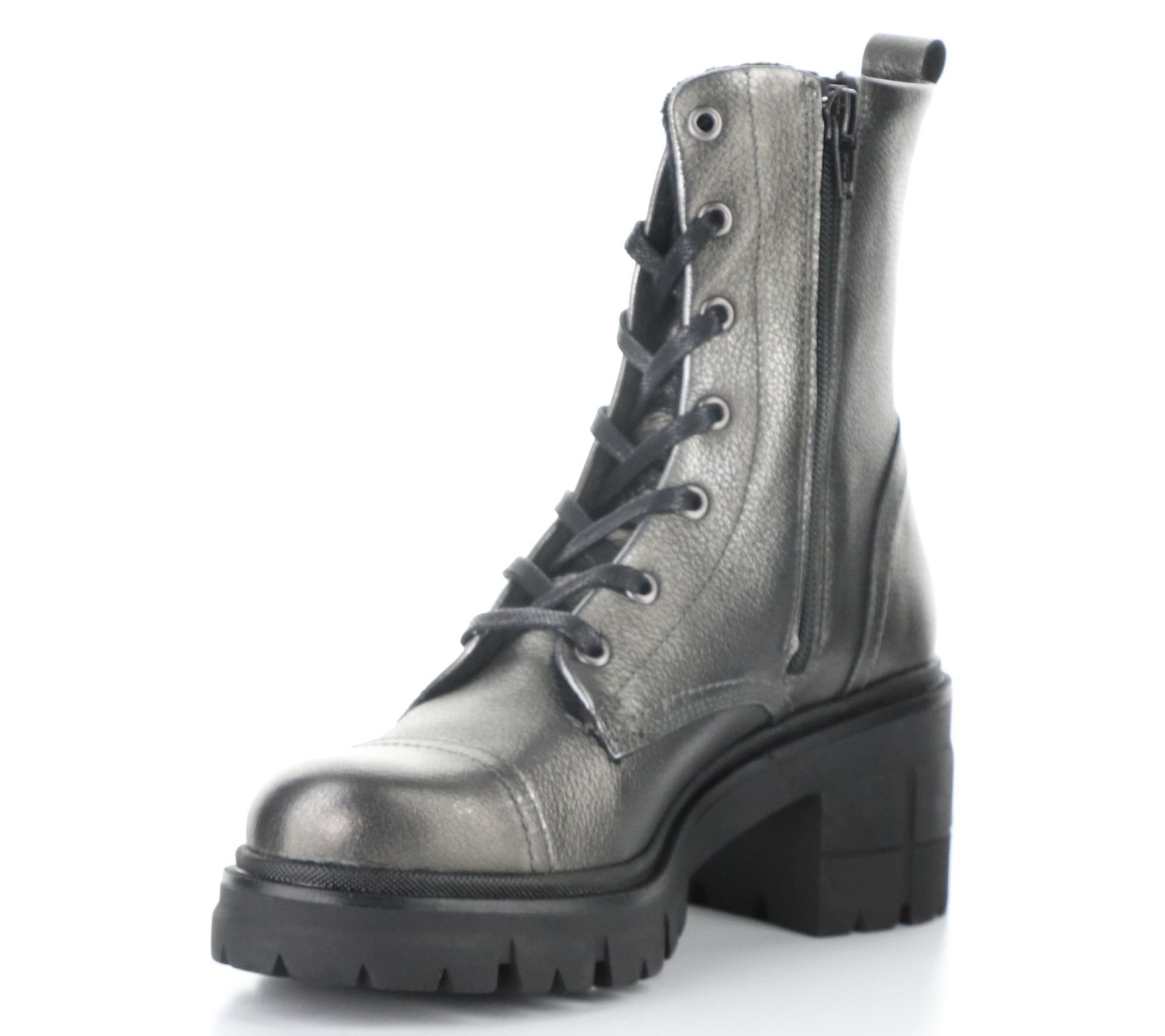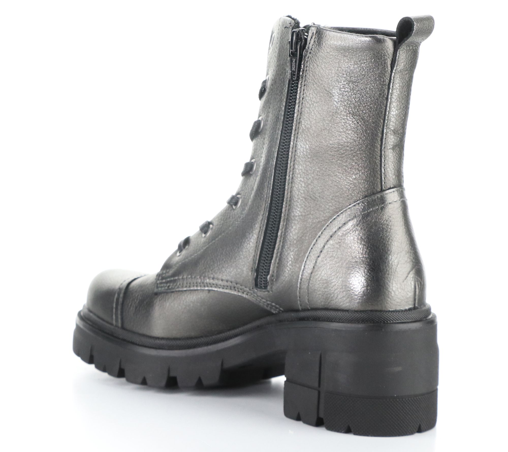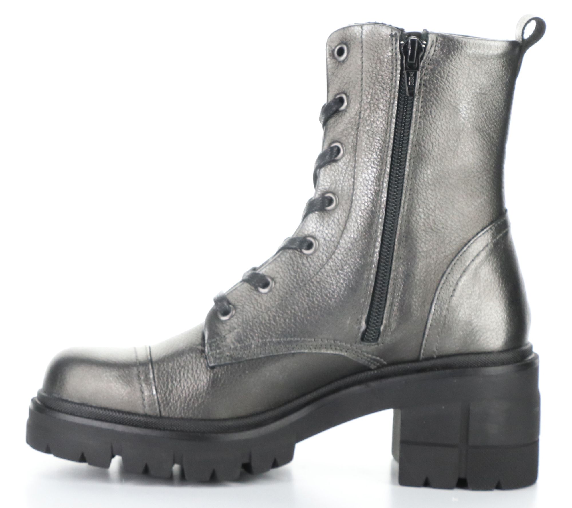 Side zip, adjustable laces, rounded toe