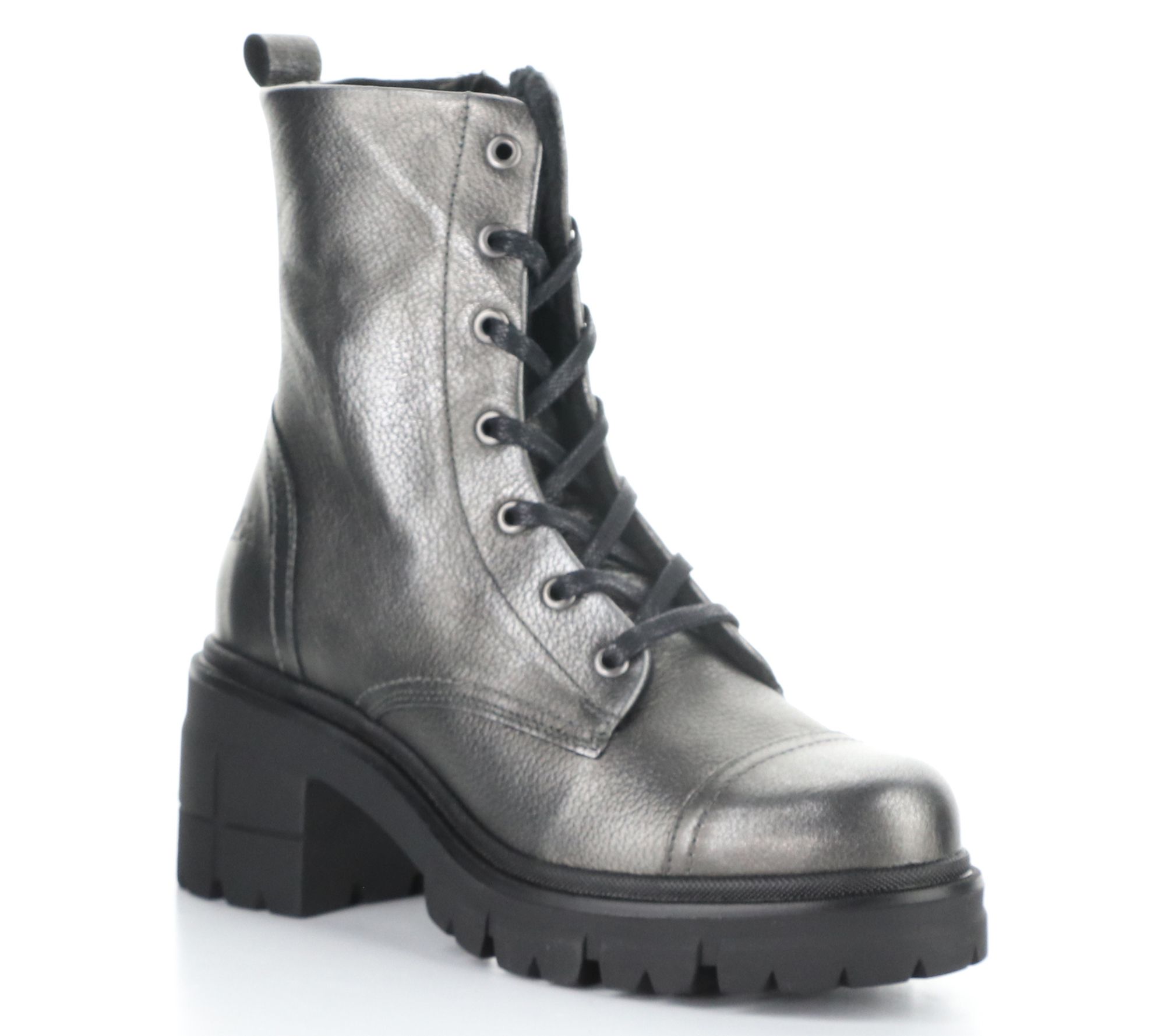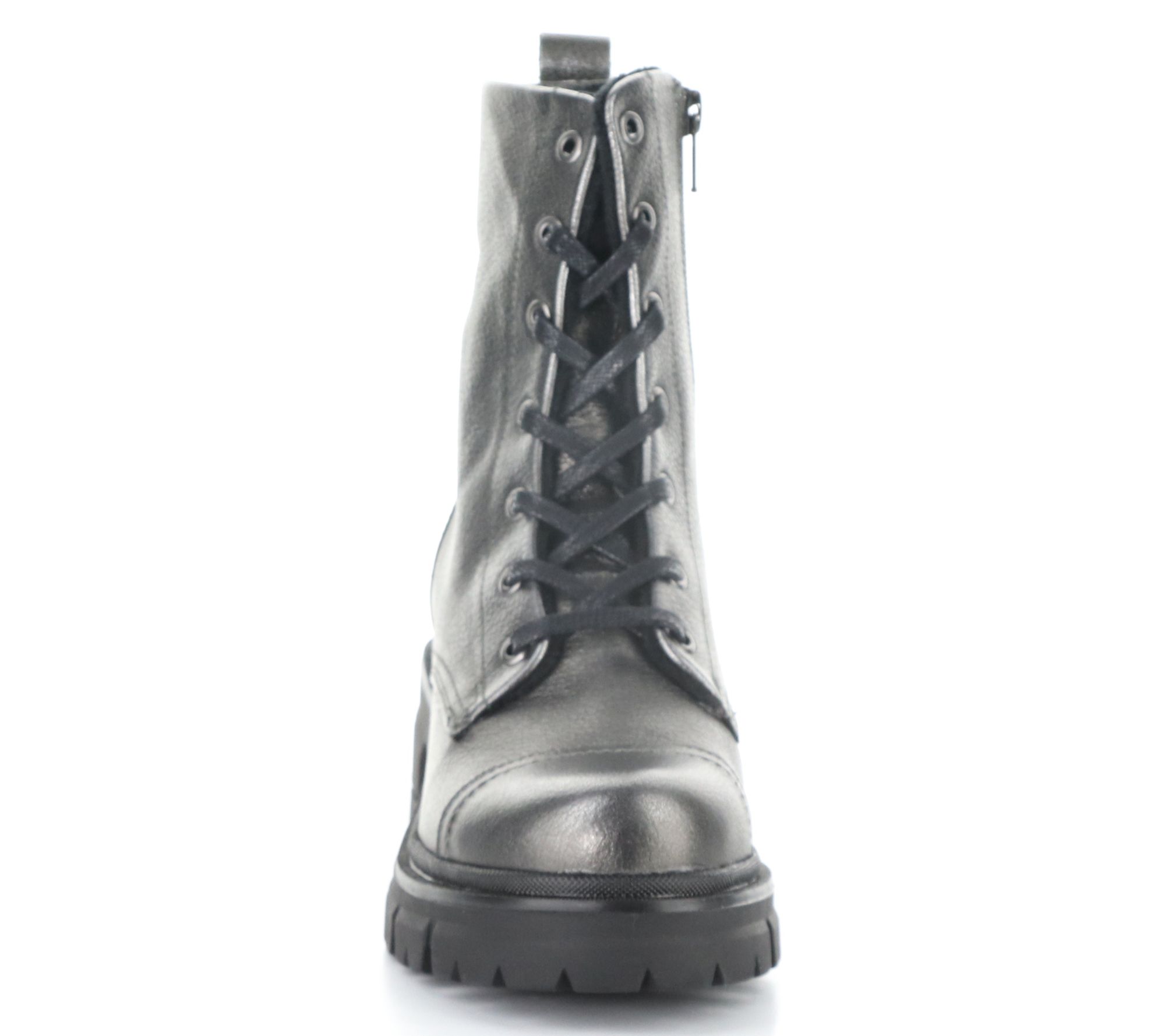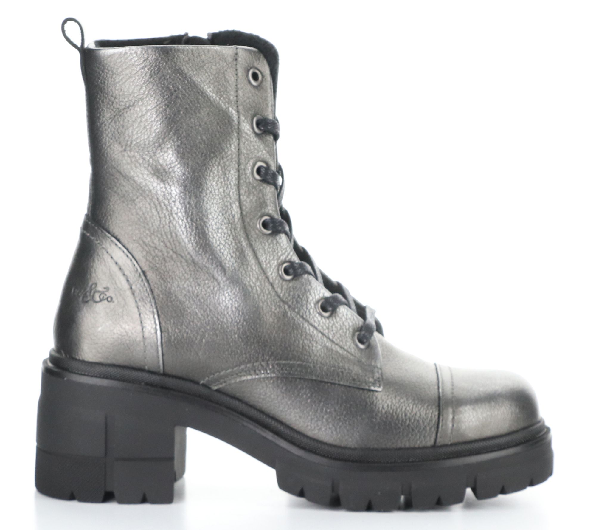 Side zip, adjustable laces, rounded toe