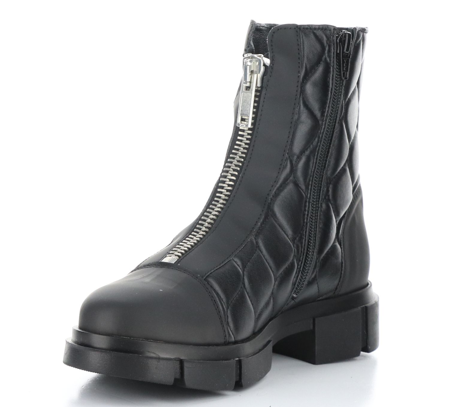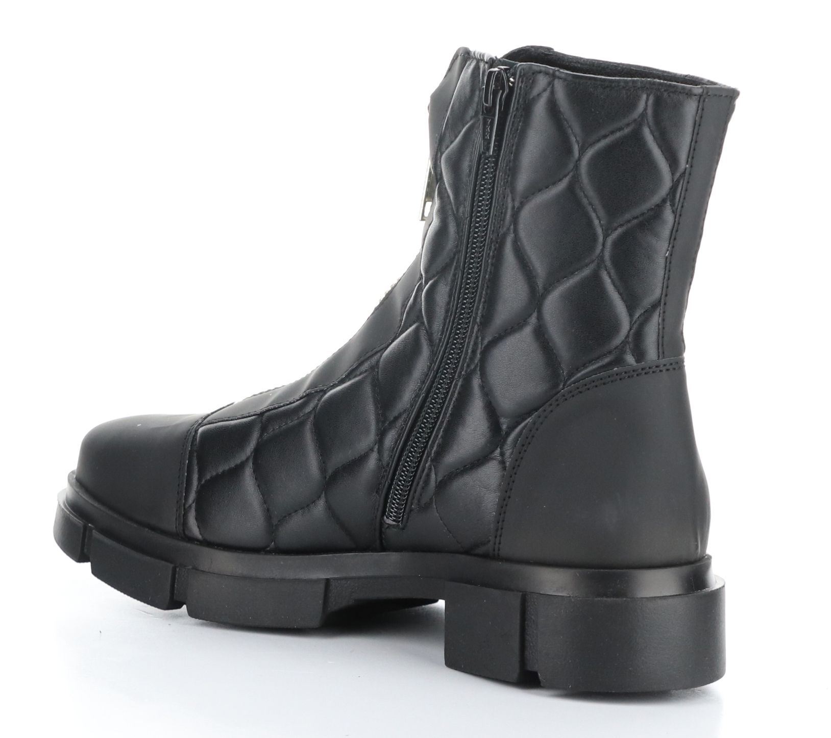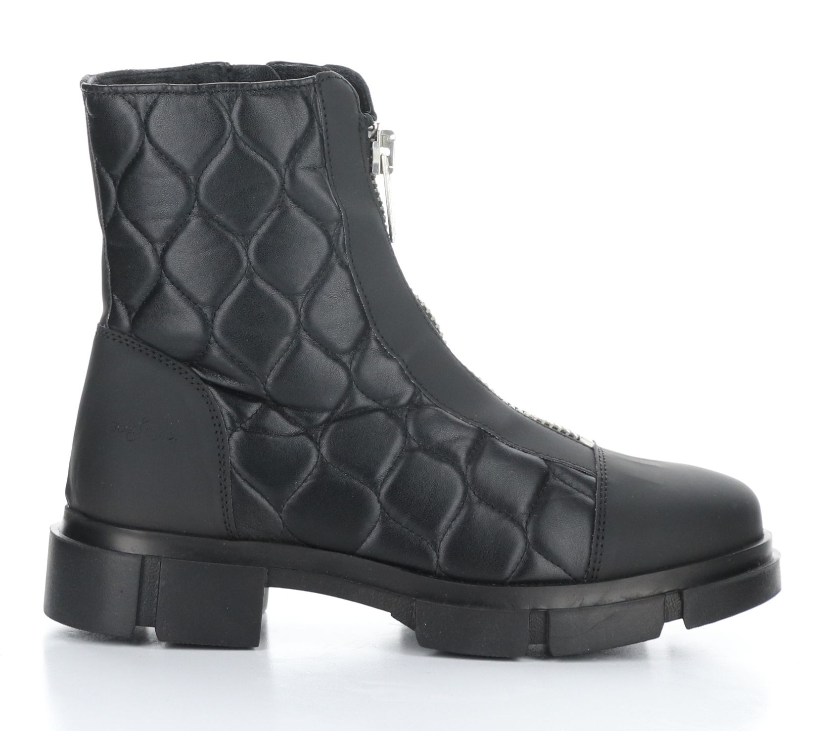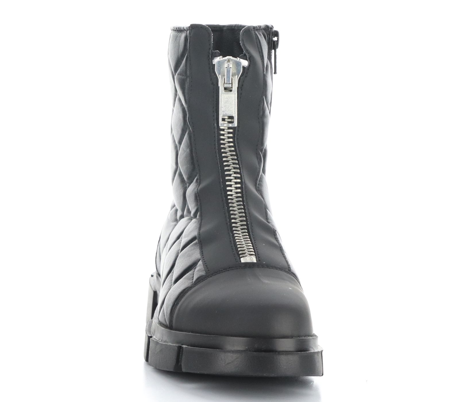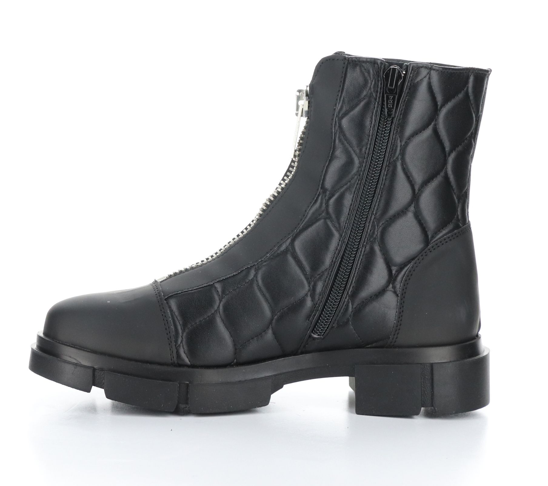 • Front-zip closure, quilted, lined, rounded toe