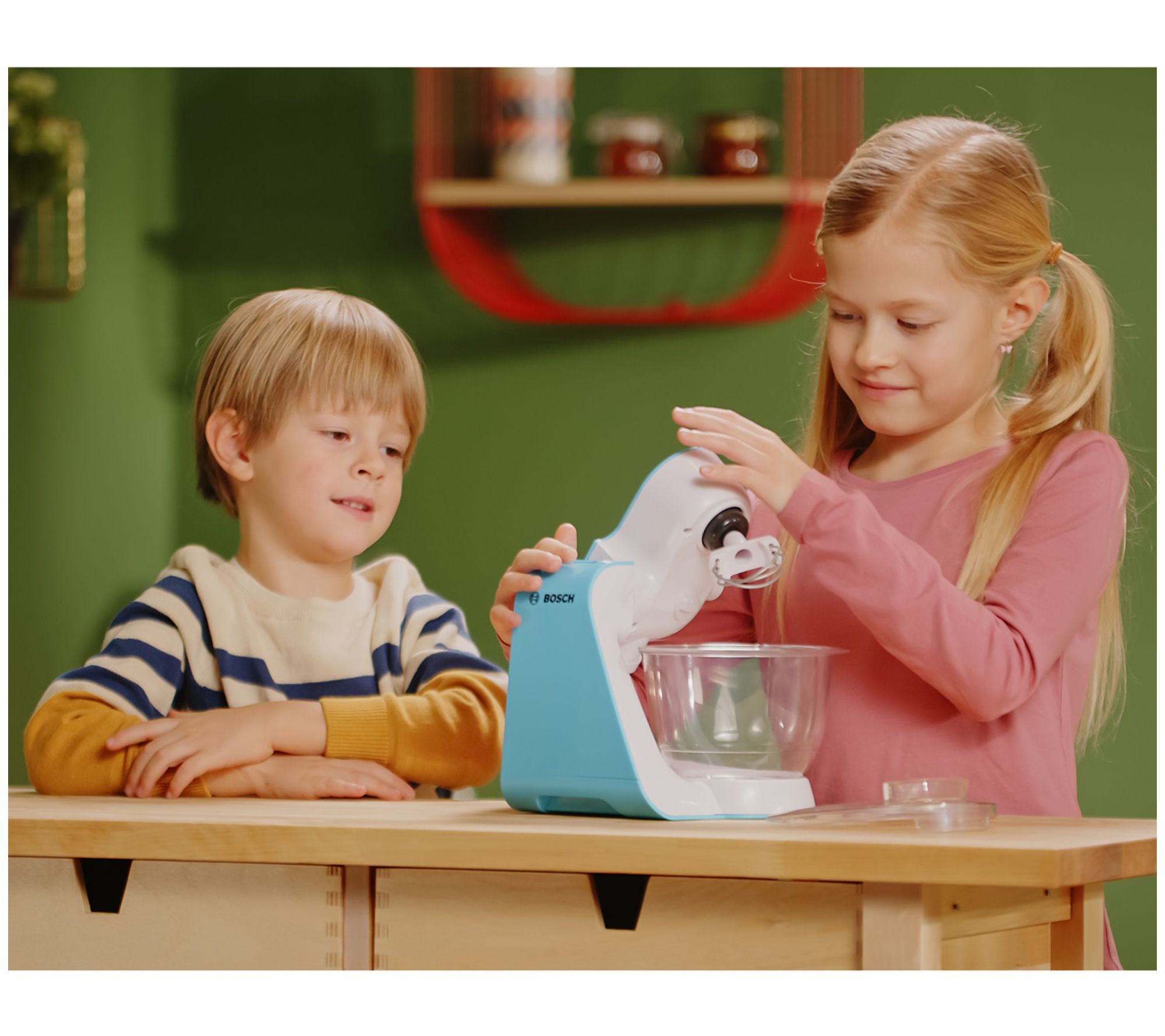 Designed for budding pastry chefs, this child-friendly toy mixer makes baking imaginative and fun with its removable whisk and realistic machine noises. From Bosch.