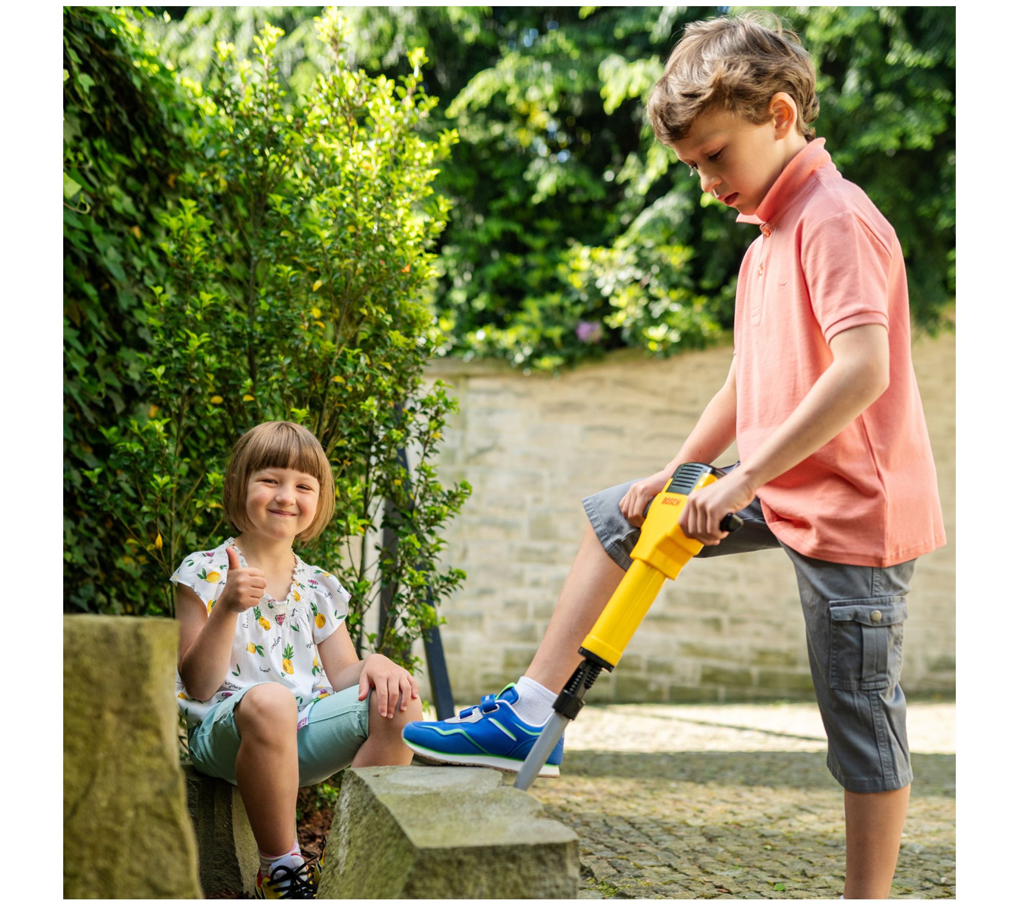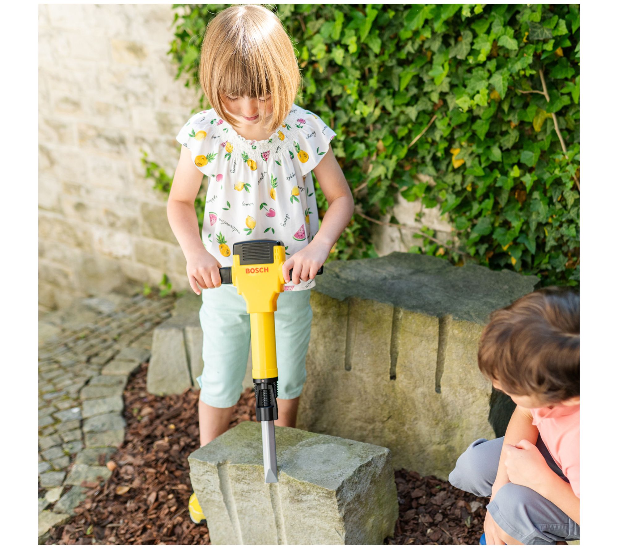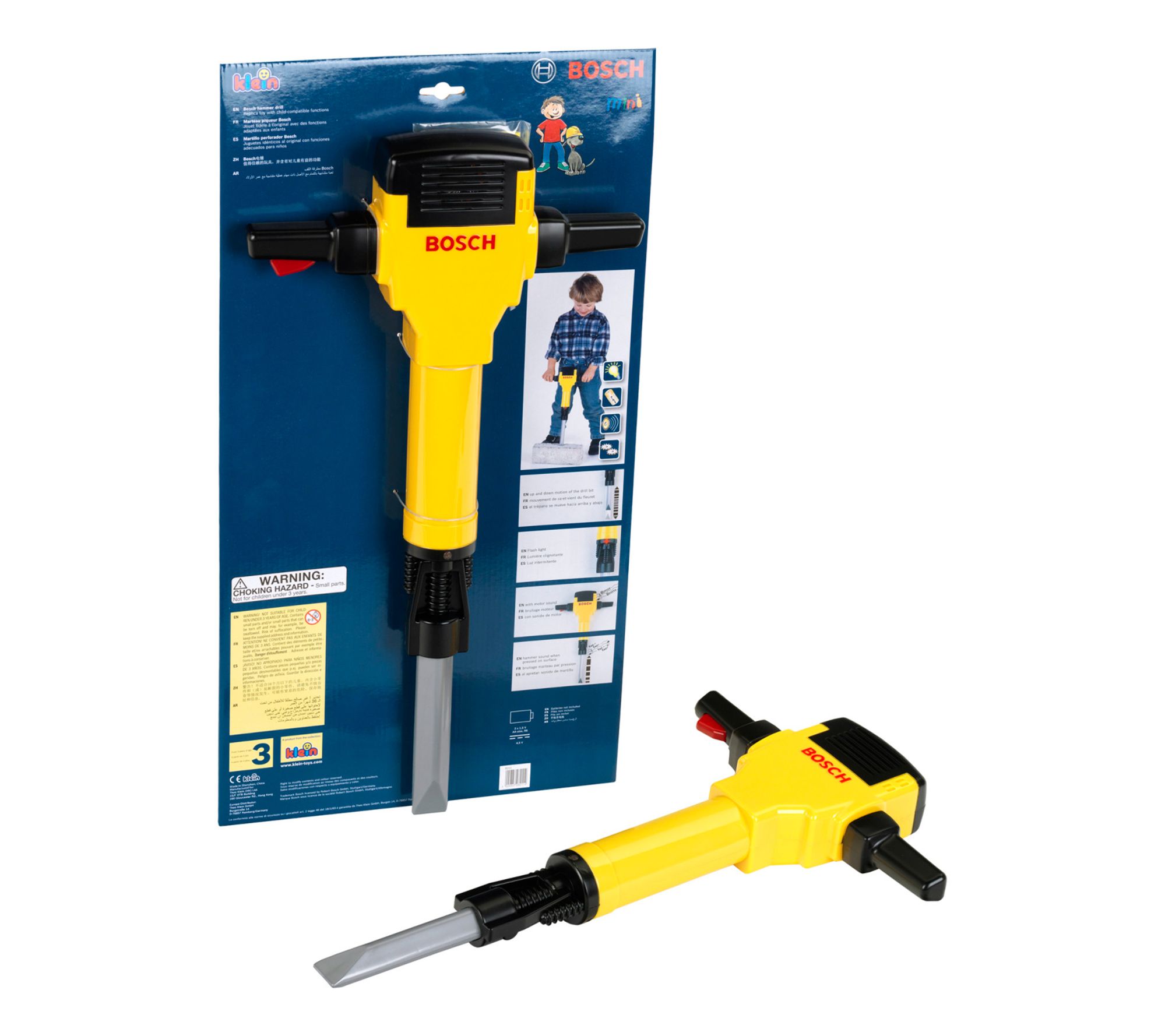 Your little one can safely dive into pretend play with the Bosch Mini Demolition Hammer. Featuring realistic lights and sounds, this hammer lets kids mimic the action of a real demolition tool, enhancing their imaginative play. From Bosch.