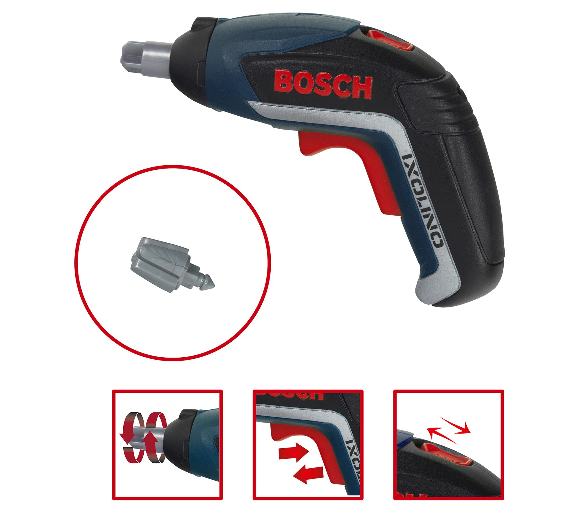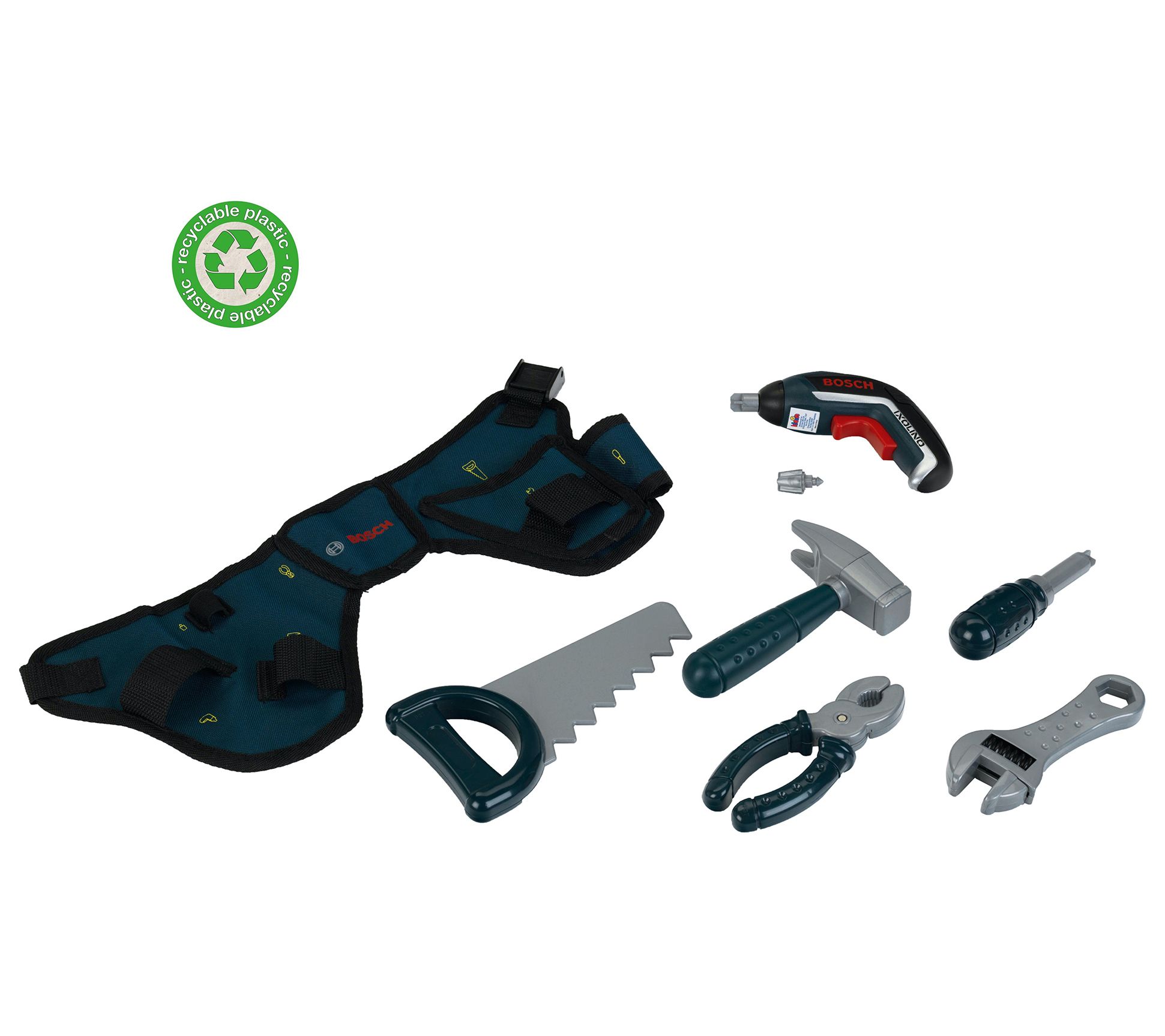 • Includes play tool belt, Ixolino cordless screwdriver with two bits, hammer, pliers, saw, adjustable wrench, and screwdriver