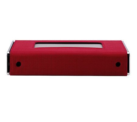 Can I use it outdoors? You bet--remove the brown leather cover and use the included nylon cover for extra protection outside--just avoid placing it on wet, dirty surfaces. Either cover unfolds into a convenient stand so you can set it up and share your music anywhere. And because a car charger is included, you can power up your speaker on the go, while heading to your destination.