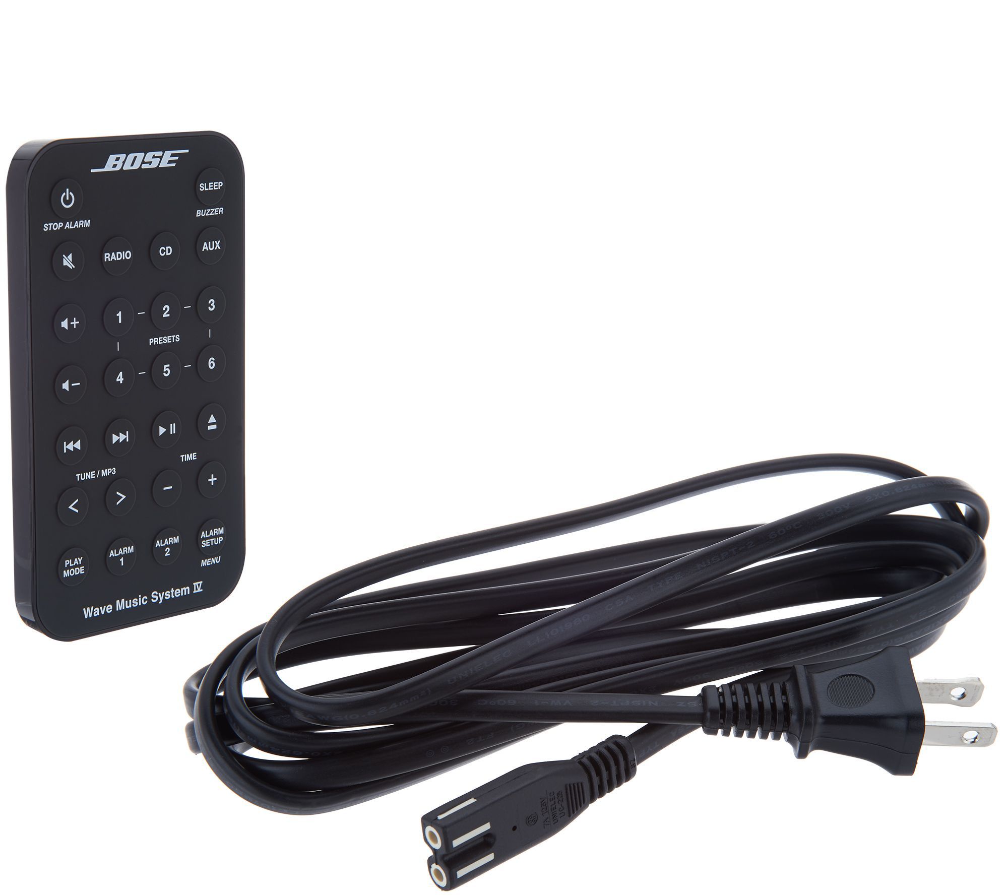 Includes Bose® Wave® Music System IV with 8'L AC power cord and remote control