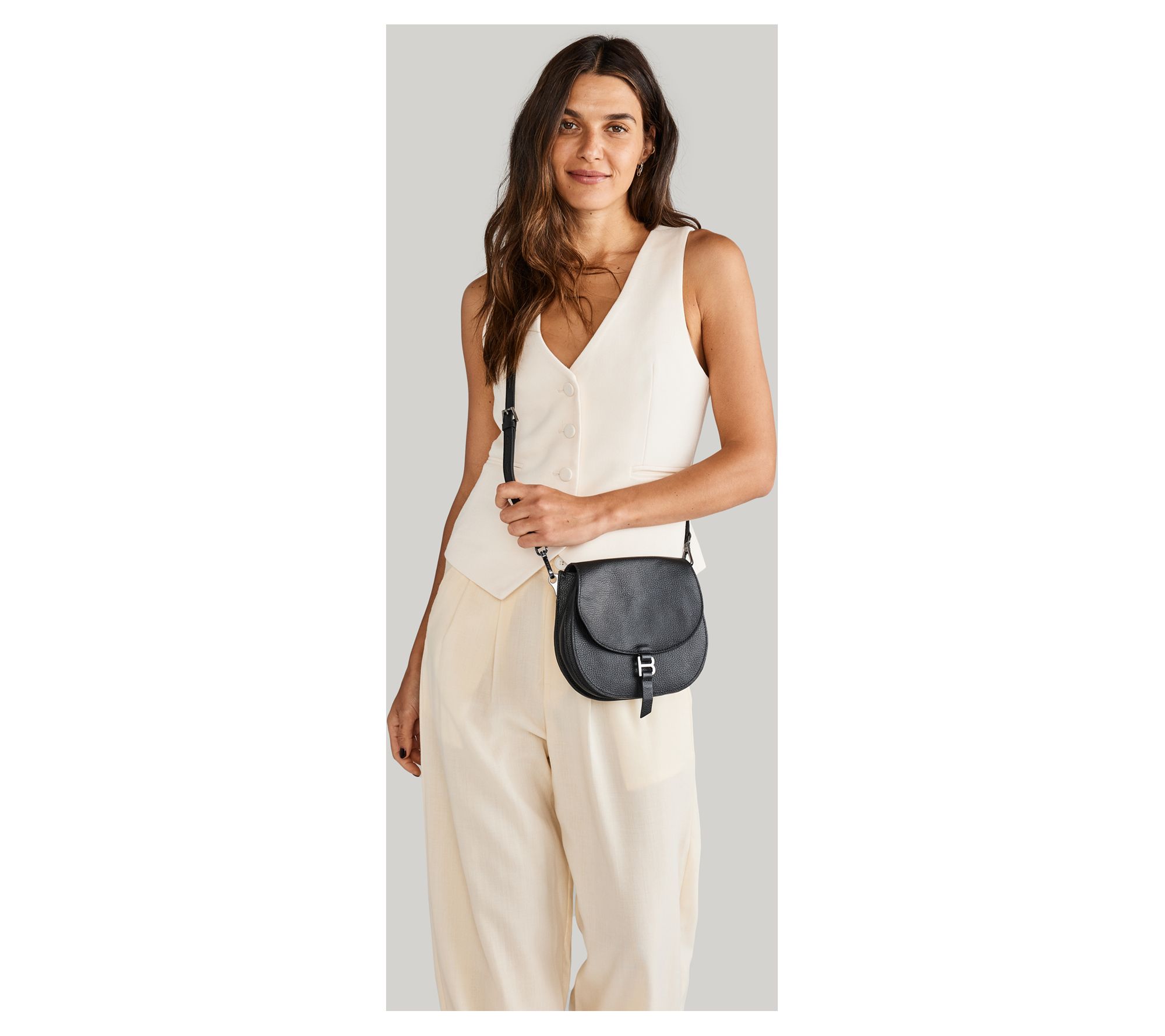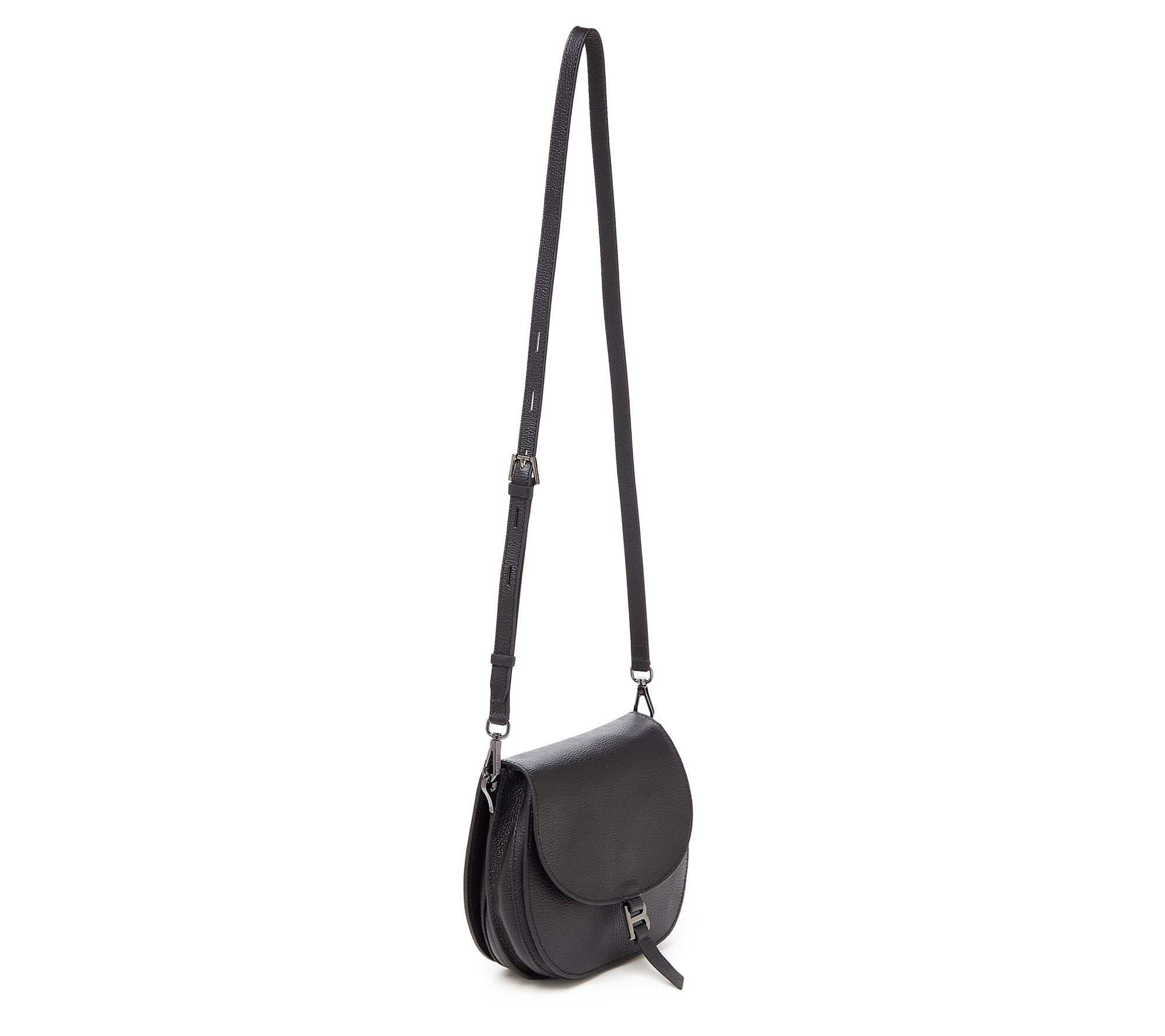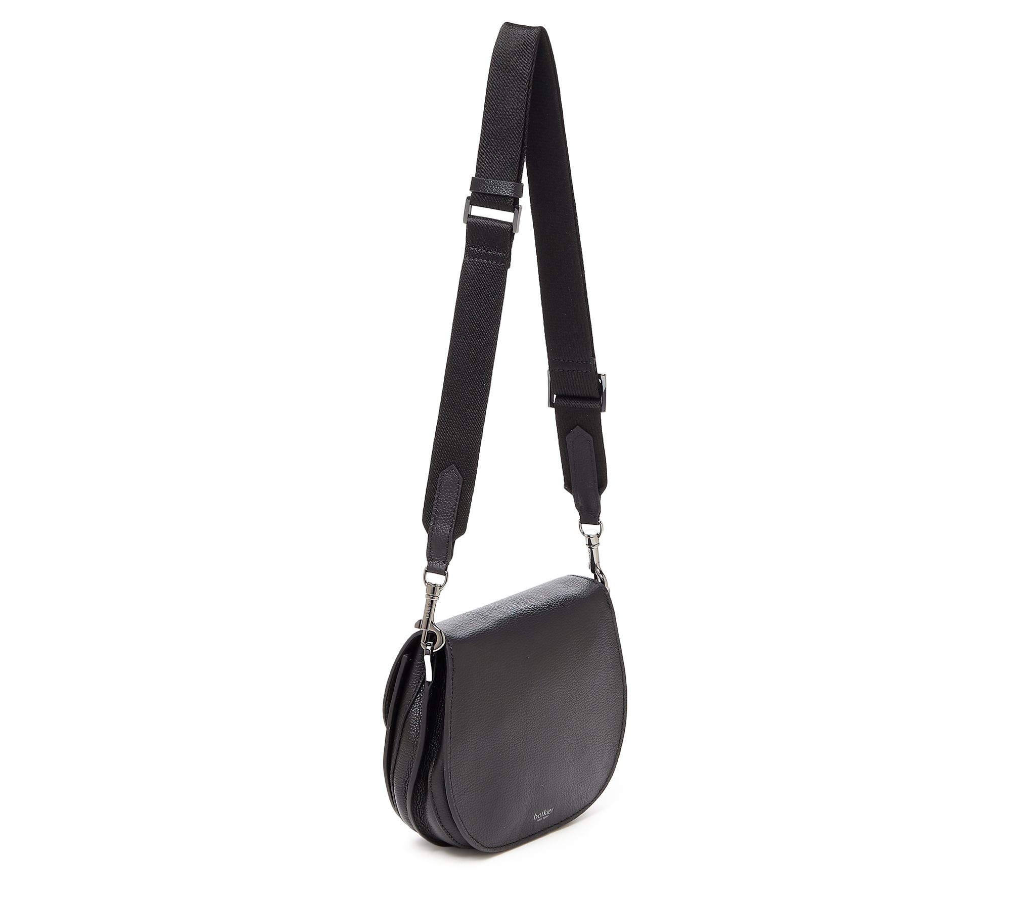 Step out with airy confidence with this hands-free saddle-shaped handbag slung over your shoulder, its luxe pebble-texture leather exterior concealing several compartments to sort and separate your supplies. From Botkier.