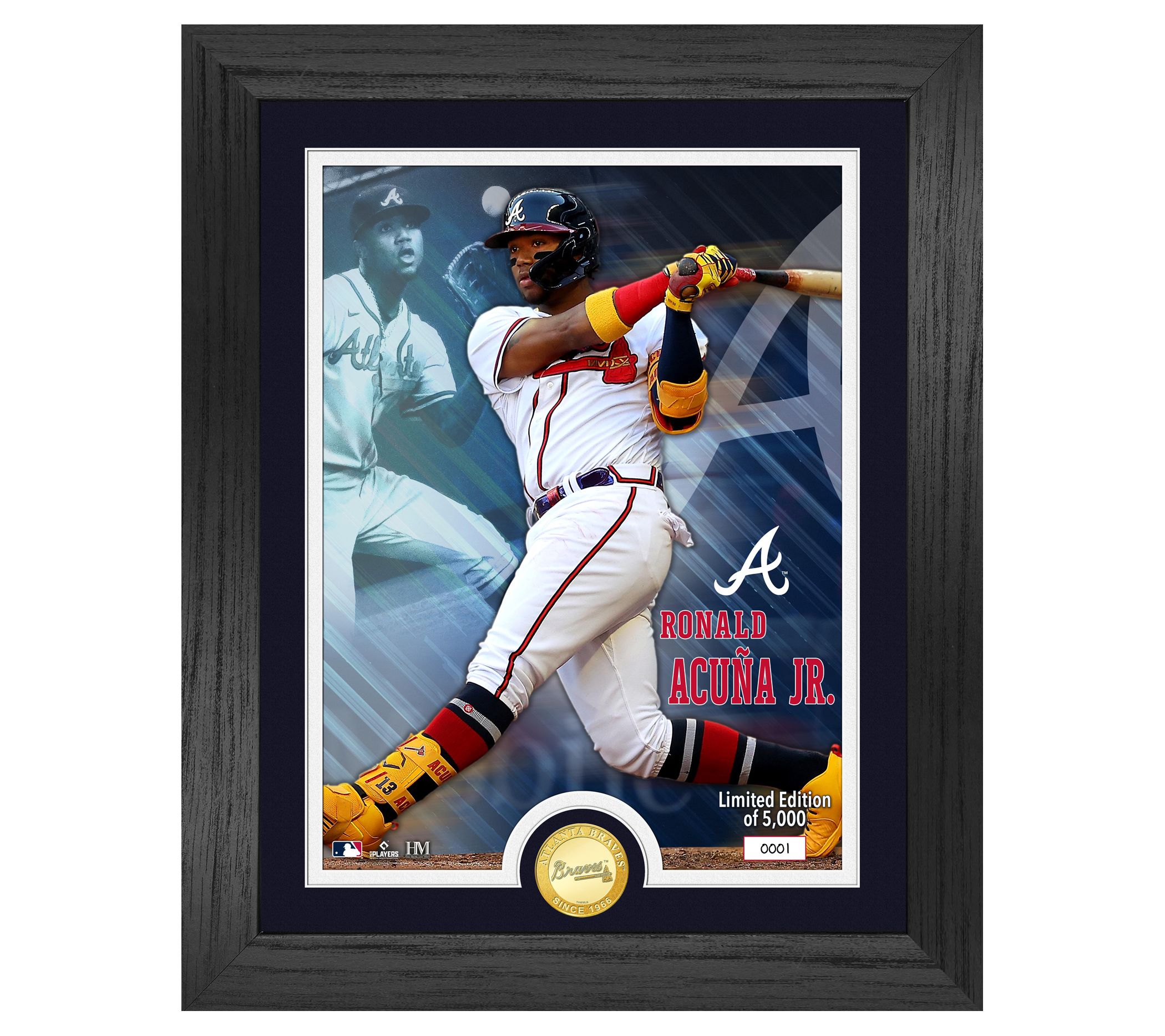 A true collectible for any baseball fan, this limited edition frame showcases a photo of Ronald Acuna and is accented with a 39mm solid bronze team coin. From The Highland Mint.
