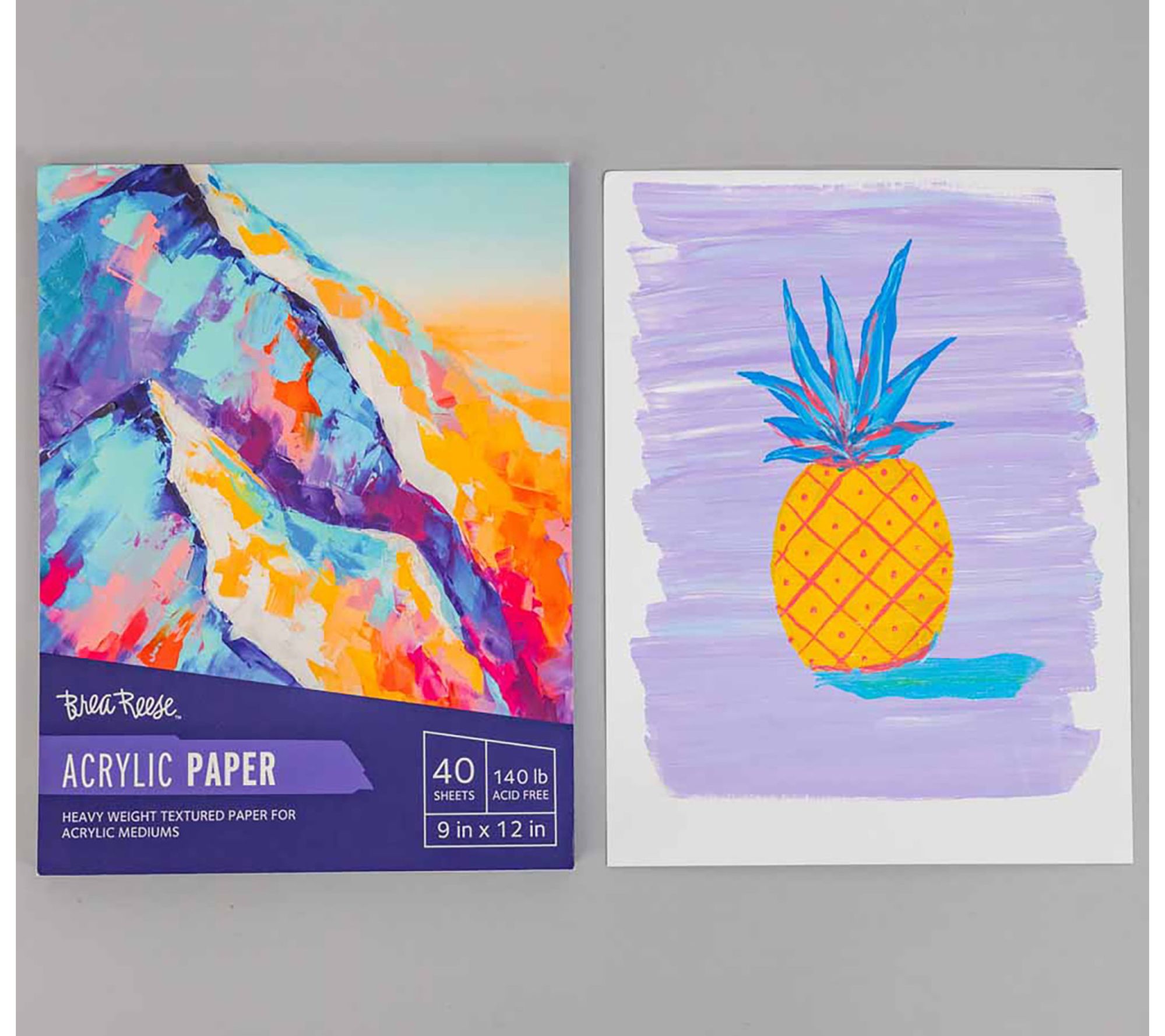 Delve into your next artistic project with the Brea Reese Acrylic Paper Pad, crafted for an optimal painting experience. Each of the 40 sturdy, acid-free sheets is designed to handle thick layers of acrylic paint without bleeding or buckling, perfect for both bold brushstrokes and intricate details. The glue-bound edge ensures easy sheet removal, ready to frame your creations. Ideal for artists of all levels, this pad makes painting effortless and enjoyable. From Brea Reese.