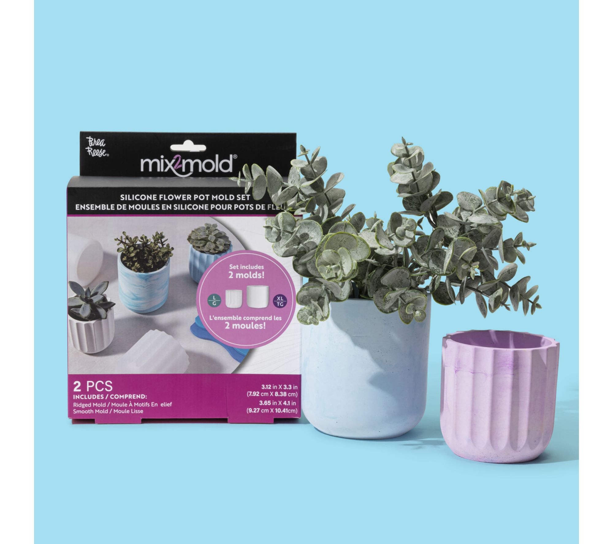 Bring your crafting visions to life with the Brea Reese Mix2Mold Value Set Planter Molds. Effortlessly create stunning resin or ceramic flower pots that are sure to impress. Designed for all skill levels, these durable silicone molds make release and cleanup a breeze, thanks to their non-stick surface and dishwasher-safe design. Perfect for any crafter looking to add a touch of uniqueness to their creations. From Brea Reese.