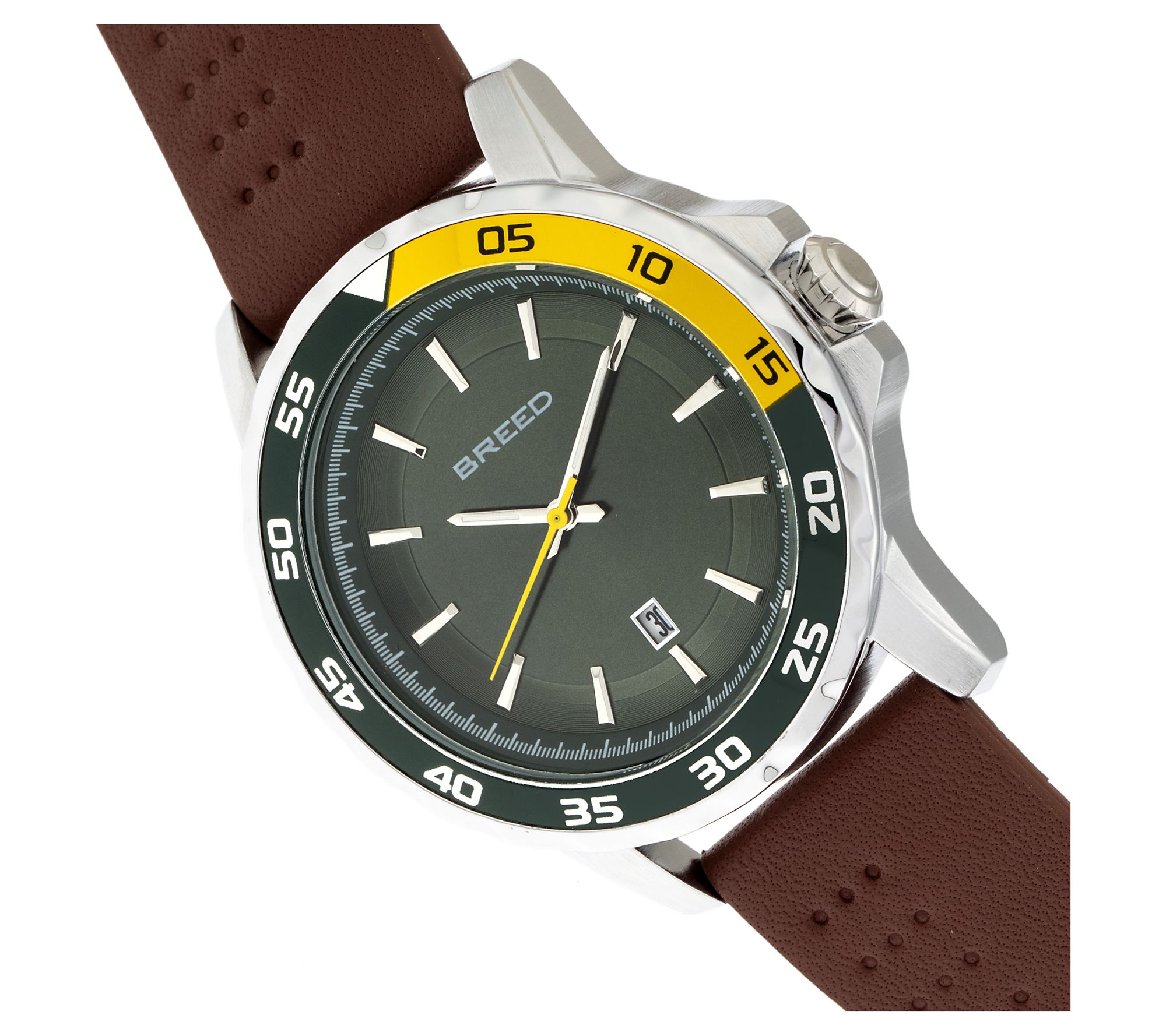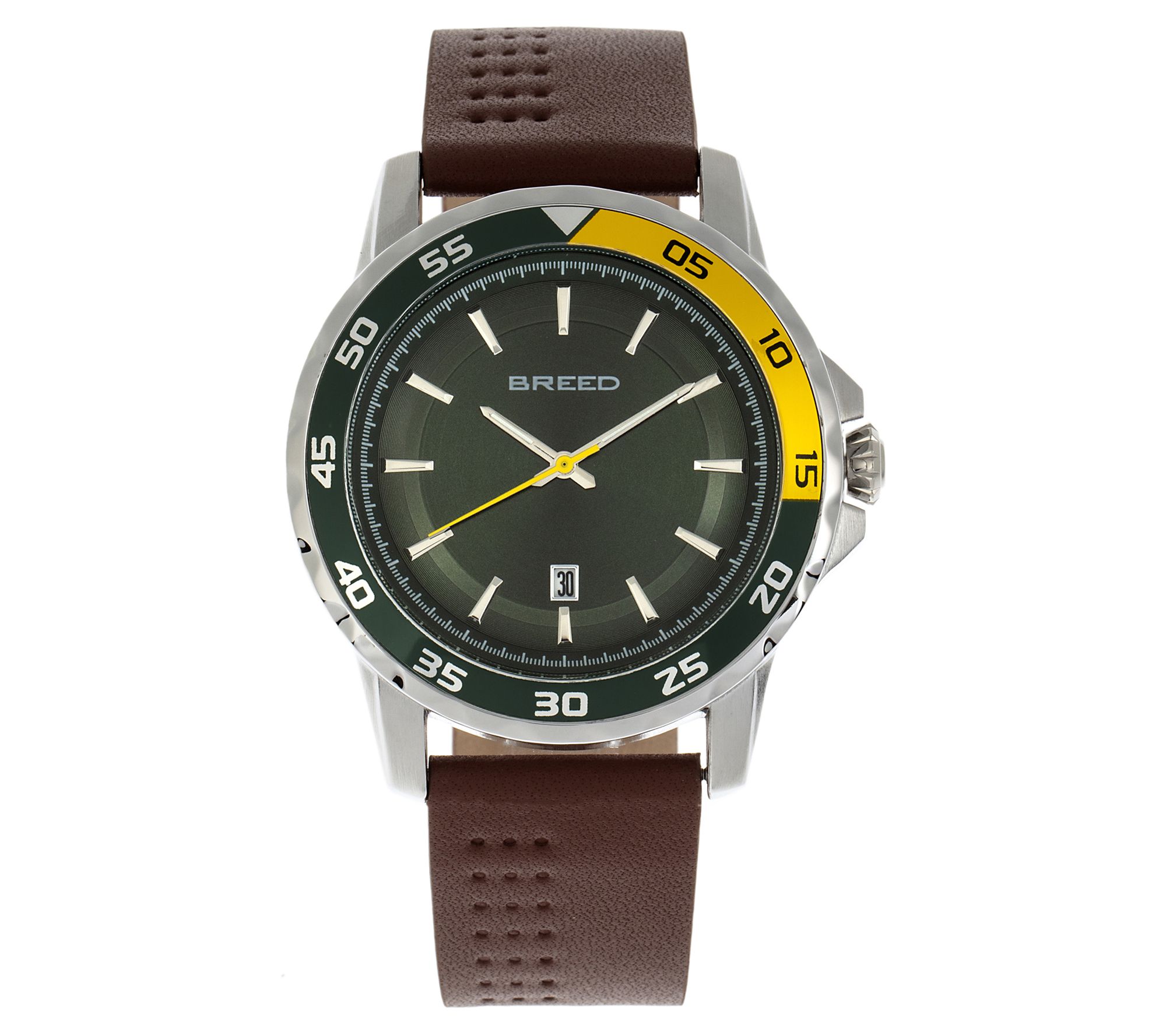 He's a keeper, yes, but he needs all the help he can get keeping in time with his busy schedule. This watch will make a big difference with its modern bezel, luminous hands, and convenient date window. From Breed.
