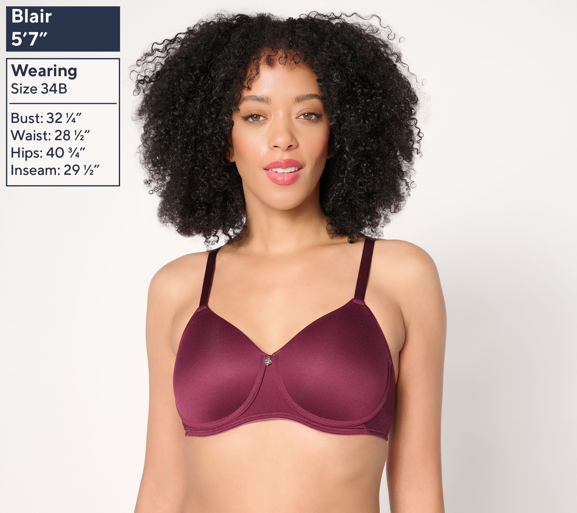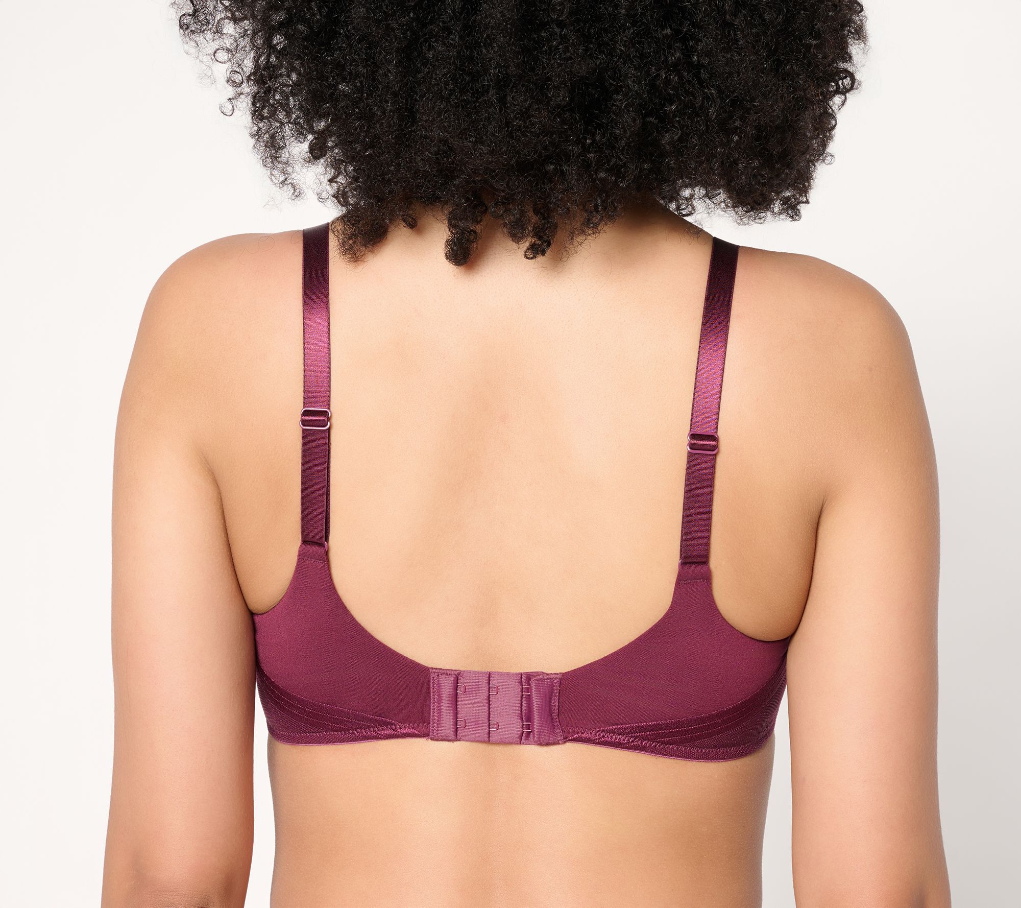 Features: wirefree T-shirt style, full-coverage design, foam contour pads for modesty, band helps smooth the silhouette from underarm to back, inner center panel lined with wicking UltimAir®, adjustable shoulder straps